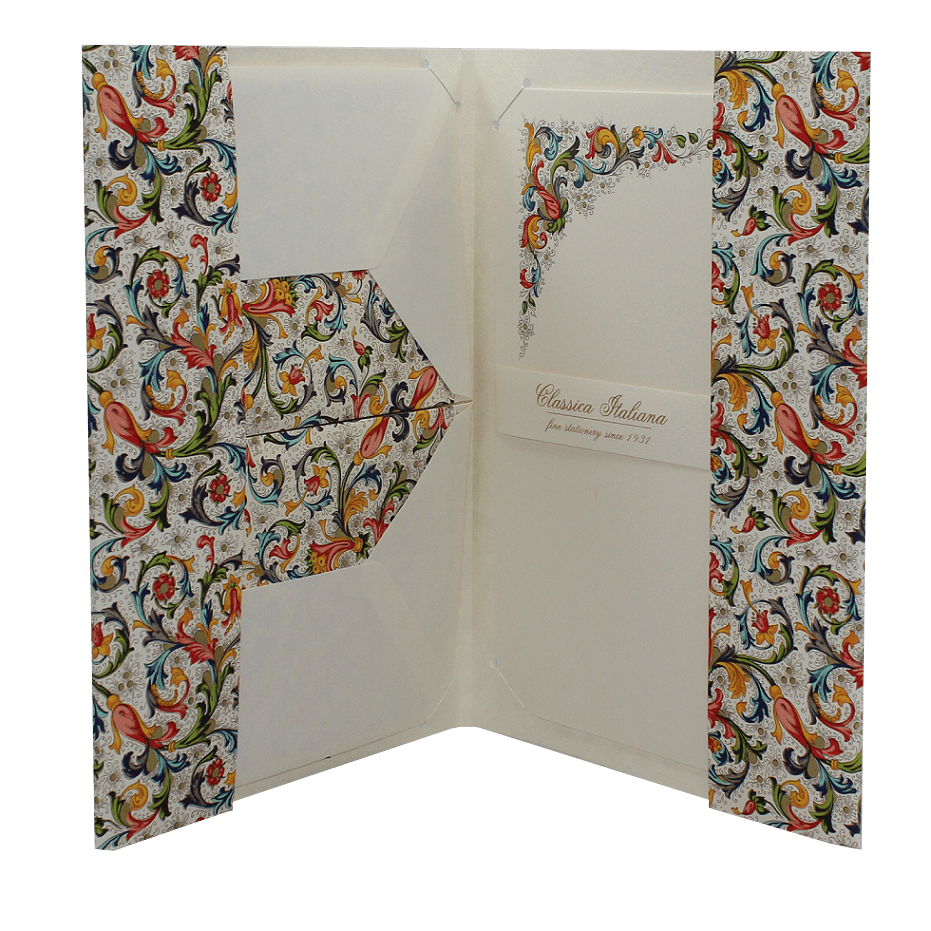 Passend zu dem Briefpapier sind die Briefumschläge hergestellt. Die Innenseiten sind mit dem Florentina-Motiv ausgeschlagen und bilden den krönenden Abschluss dieses Briefetuis.