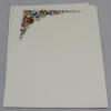 Von besonderer Qualität ist das echte Büttenpapier. Dieses ist absolut säurefrei und weist einen chamoire-farbenes Ton auf. Dadurch ist es besonders geeignet um auch mit Tinte beschrieben zu werden. Auf dem Briefpapier ist in der linken oberen Ecke ein wunderschöner Farbdruck aus floralen Blumenranken, Schmetterlingen und Vögeln im roten Florentina-Muster aufgebracht. Typisch für diesen Druck ist eine zusätzliche Gold-Pulverung, die diesem Motiv eine besondere Eleganz und Tiefe verleiht.