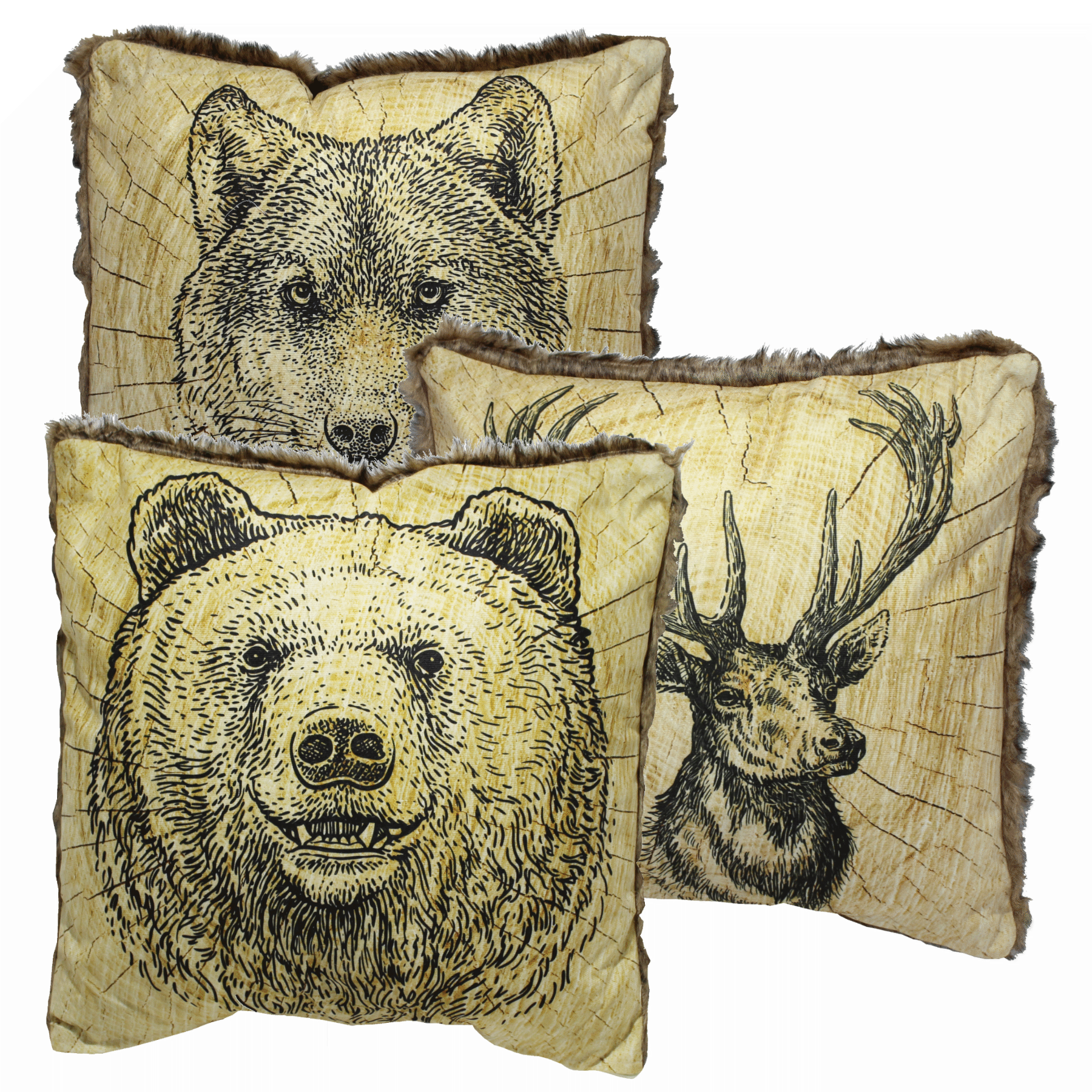 Wählen Sie aus, welches Kissen am besten zu Ihrem Ambiente passt: Gruffy, der Hirsch, Gruffy, der Wolf oder Gruffy, der Bär.