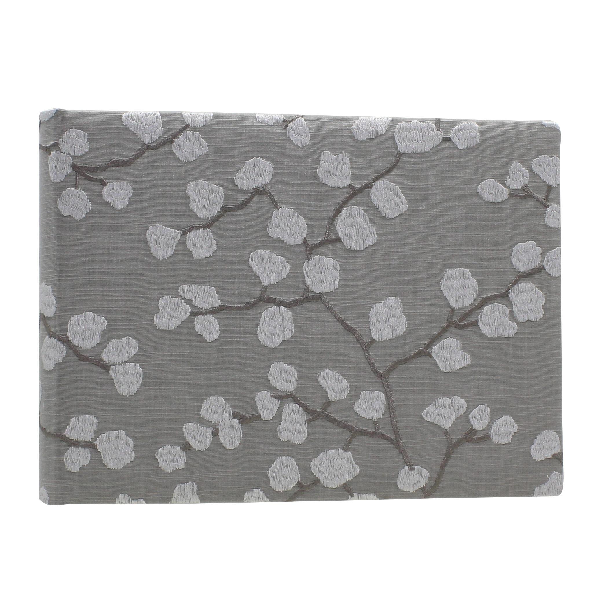 Das praktische Foto-Gästebuch Melantha ist Fotoalbum und Gästebuch in einem! Ein Foto-Gästebuch ist eine besonders hochwertige Alternative zum klassischen Gästebuch für all die lieben Glückwünsche und persönlichen Worte von jedem Gast. So haben Sie neben einmaligen Bildern auch all die guten Wünsche der lieben Gäste in einem Sammelband. Der graue Softcover-Stoffeinband ist mit stilvollen Stickereien in Form von Ästen und Blättern verziert.
