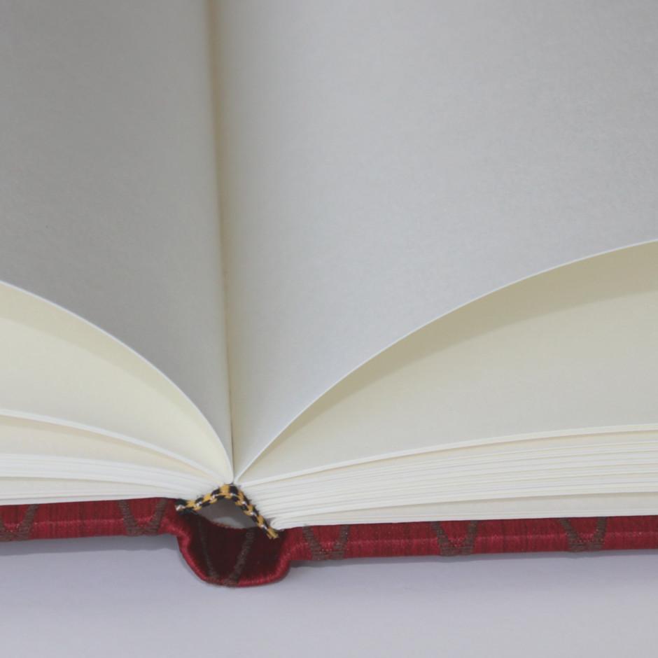 Das besondere Detail ist jedoch der in Fadenheftung gefertigte Block, der für eine lange Haltbarkeit sorgt. Dieses Merkmal buchbinderischer Handwerkskunst indem die Blätter mittels Faden verbunden werden, unterscheidet sich ganz klar von den billigen Produkten mit Klebebindung.