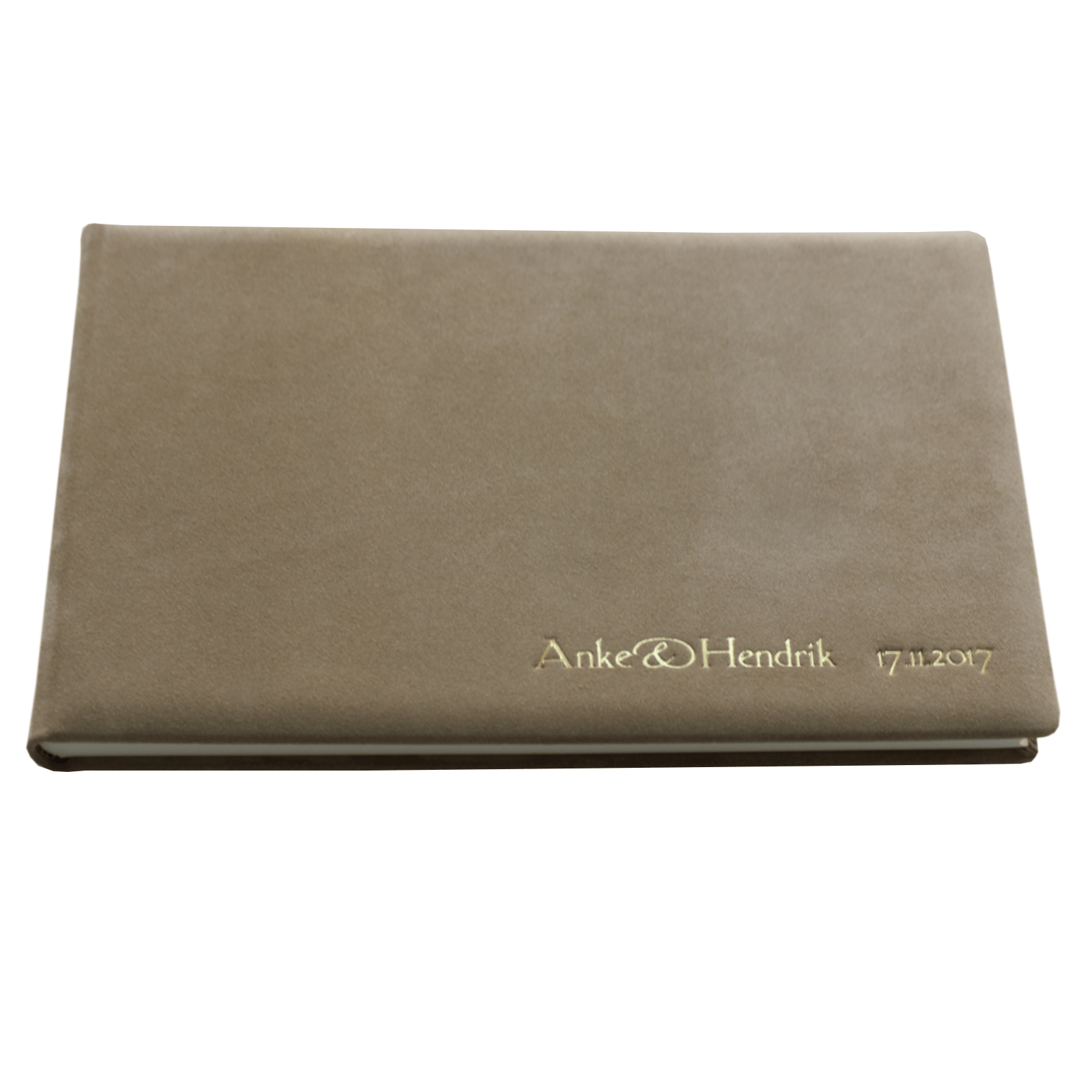 Das Foto-Gästebuch in Wildleder Lattemacchiato wird durch die Goldprägung auf dem Cover zu einem Blickfang. Damit verleiht die subtile Verzierung Buch eine edle Note und unterstreicht die Bedeutung der festgehaltenen Momente. Durch die individuelle Namensprägung ist das Buch so ein ganz persönlicher Schatz, der Ihre Geschichte einzigartig macht. Den Text bitte unter Anmerkung angeben.