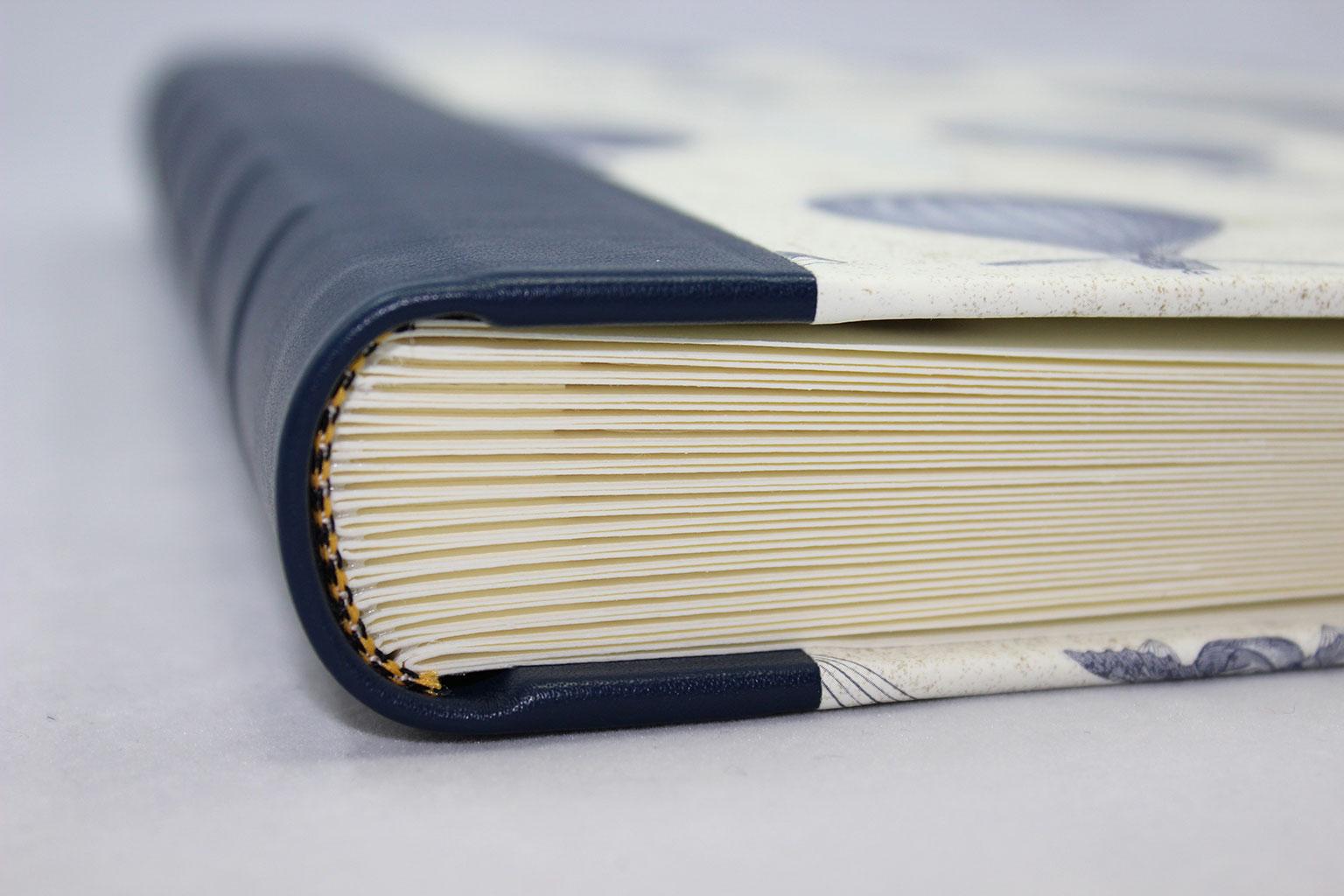 Um den typischen Buch-Charakter zu erreichen, werden der Block sowie der Buchrücken gerundet. Zusätzlich wird der Buchblock mit einem Kapitalband veredelt. Der Buchrücken und die Ecken sind mit Vollrindleder bezogen. Daher stammt auch der Ausdruck „Halbleder“! Sie werden die Qualität spüren und den unverfälschlichen Ledergeruch lieben.