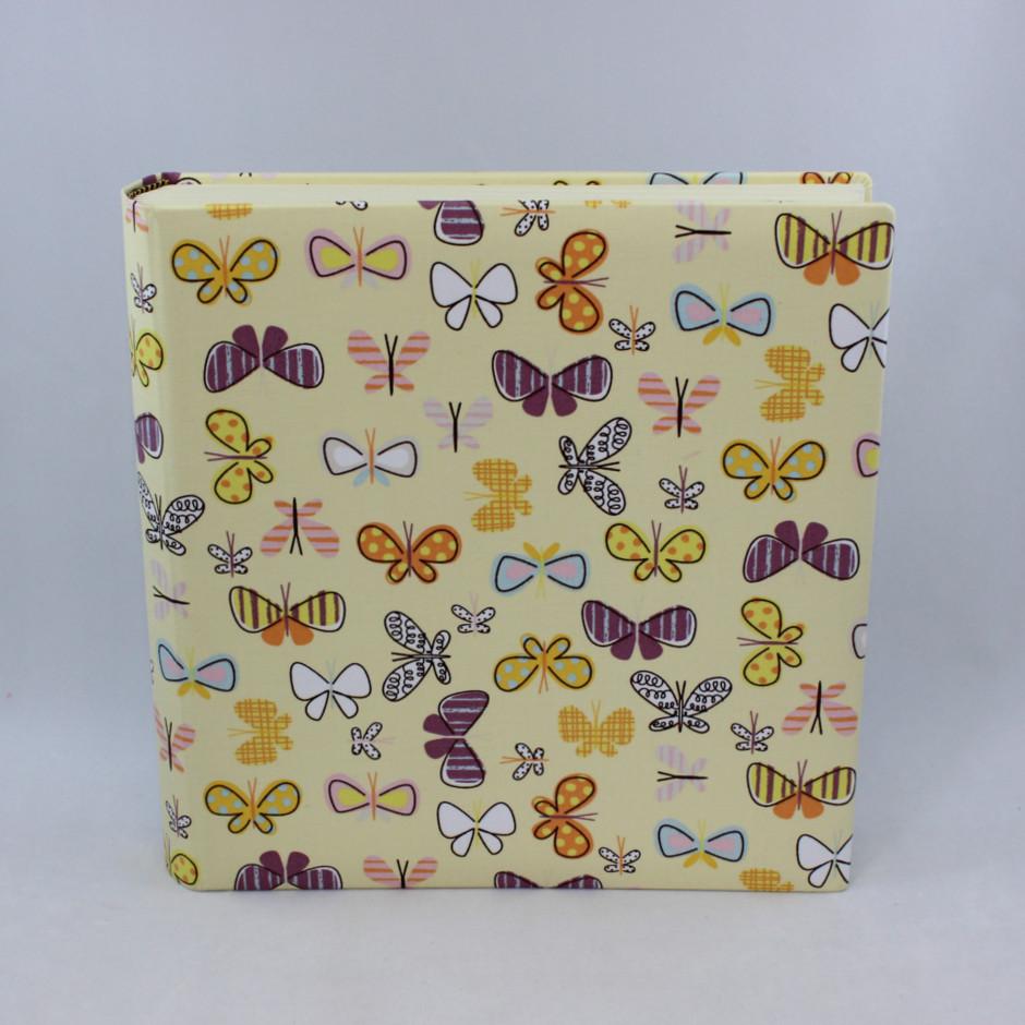 Das wunderschöne Fotoalbum Farfalle besticht durch seine frischen Gelbtöne und den vielen bunten Schmetterlingsmotiven.