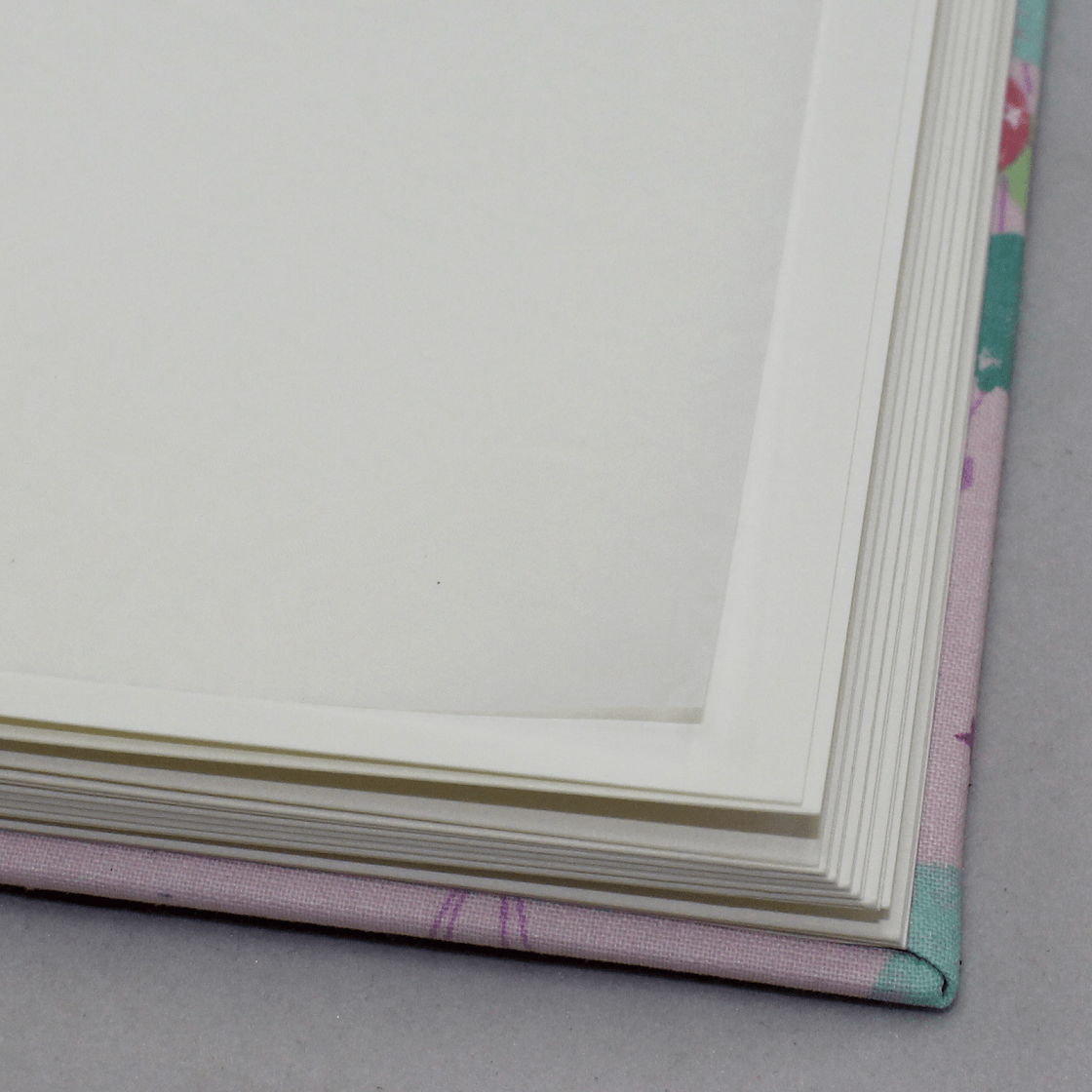 Damit das Fotoalbum Luftballons in rosé-pink seine weiche Haptik erhält, wird der Stoffeinband in Softcover hergestellt. Ein weiteres besonderes Merkmal reiner Handarbeit ist der von Hand einschlagene Einband.