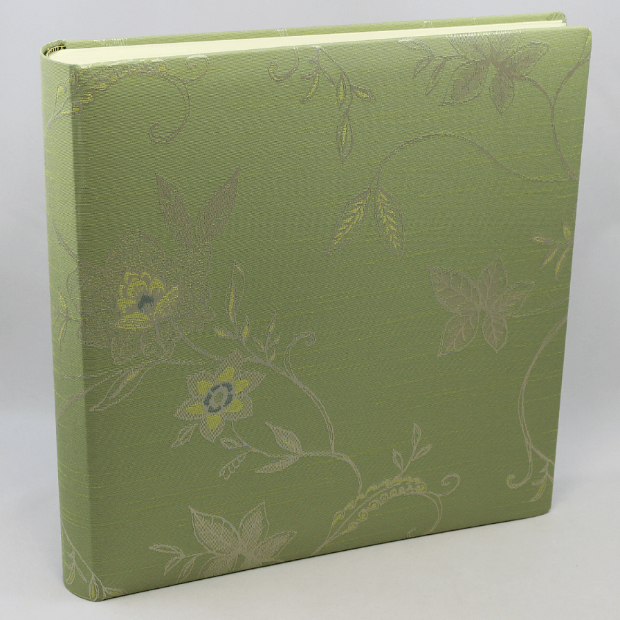Das Fotoalbum Mandy grün groß, besticht durch seinen feinen Baumwollstoff und dem edlem Blumenmuster.