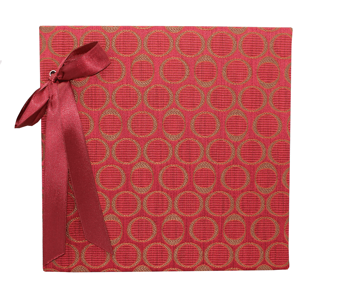 Dieses elegante Album der Vera Donna Manufaktur, wird in reiner deutscher buchbinderischer Handarbeit hergestellt und besticht durch seine einzigartige Optik. Der Einband wird mit einem hochwertigen Baumwollstoff bezogen, der aufwendig aus drei Garnfarben in Rottönen mit einem eleganten Kreismuster gewebt ist.