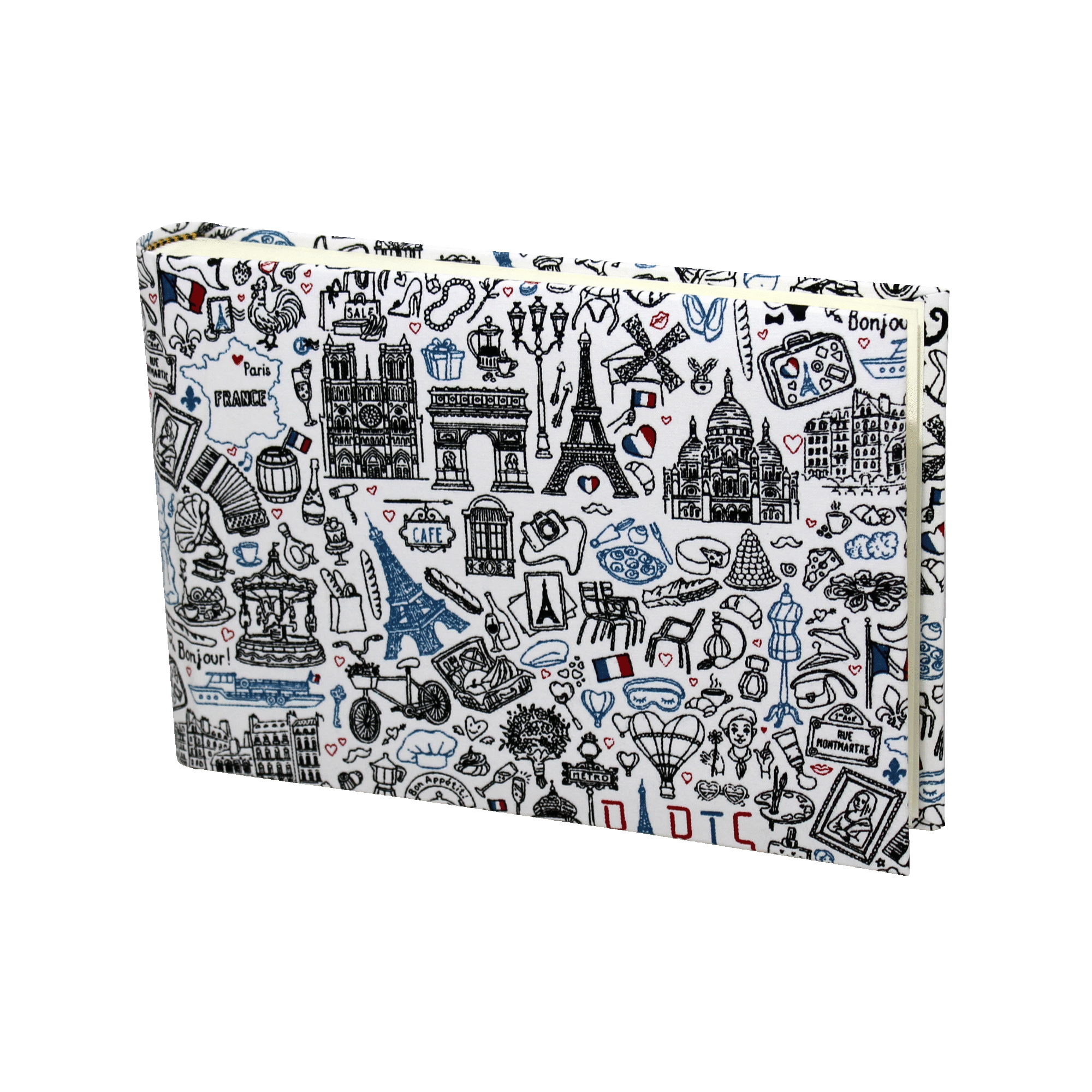 Das Fotoalbum Paris ist im praktischen Querformat erhältlich. Der in Baumwolle bezogene Softcover Einband ist mit detailgetreuen Zeichnungen von Motiven aus Paris bedruckt.