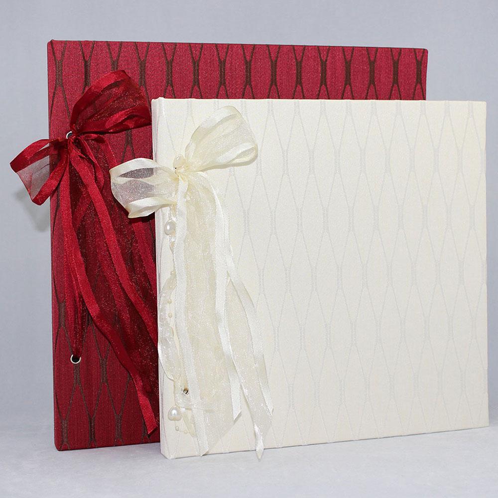 Das elegante Fotokordelalbum Milano aus exklusivem Stoffeinband in edler Rautenoptik wird mit einer farblich passenden Schleife gebunden.