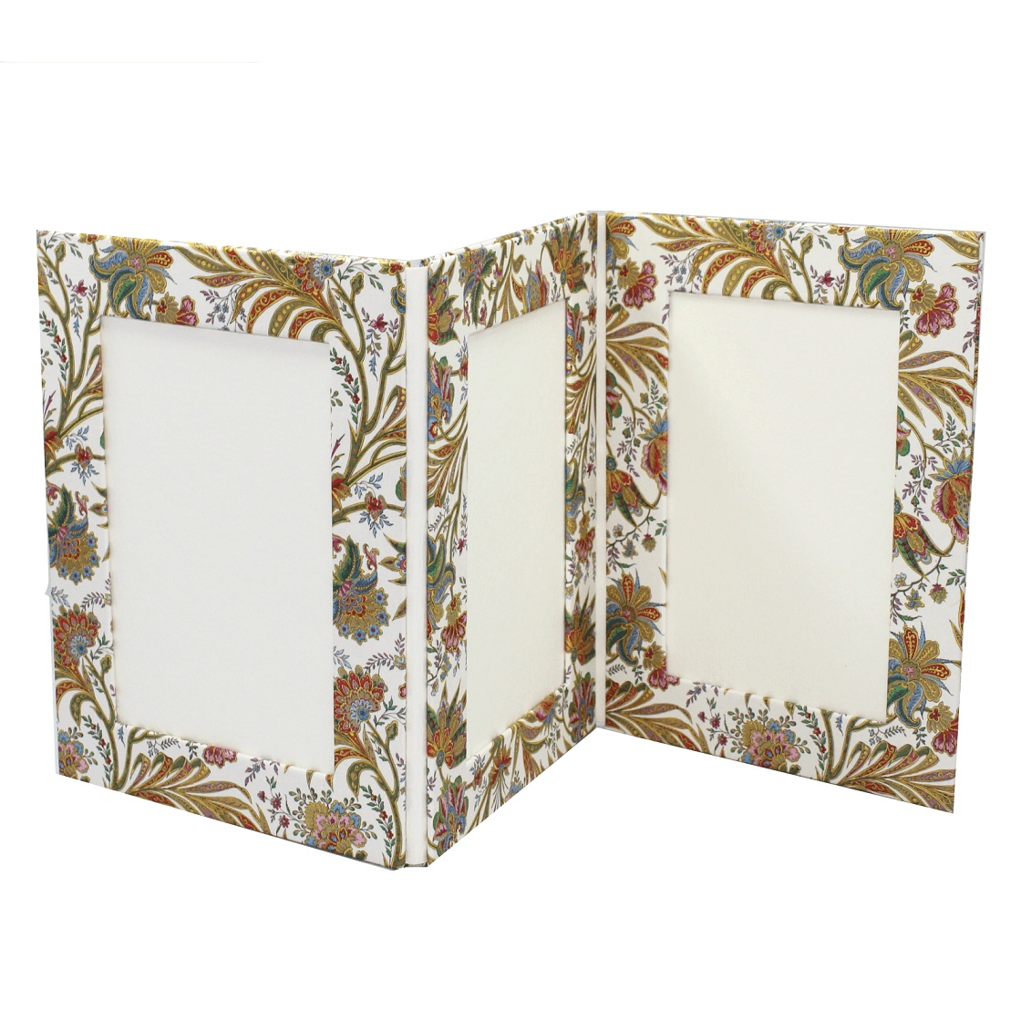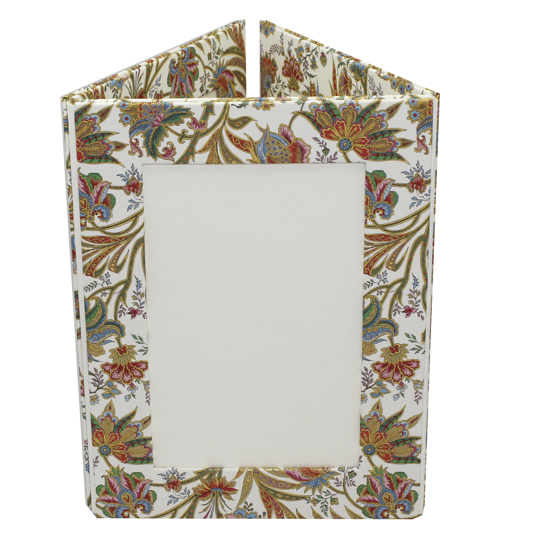Der wunderschöne Fotorellos Ciprio hochkant mit edlen Fotorahmen aus goldgepulvertem Papierbezug besticht durch seine farbenfrohen Blumenmotive, sowie die hochwertige Verarbeitung in buchbinderischer Handarbeit.