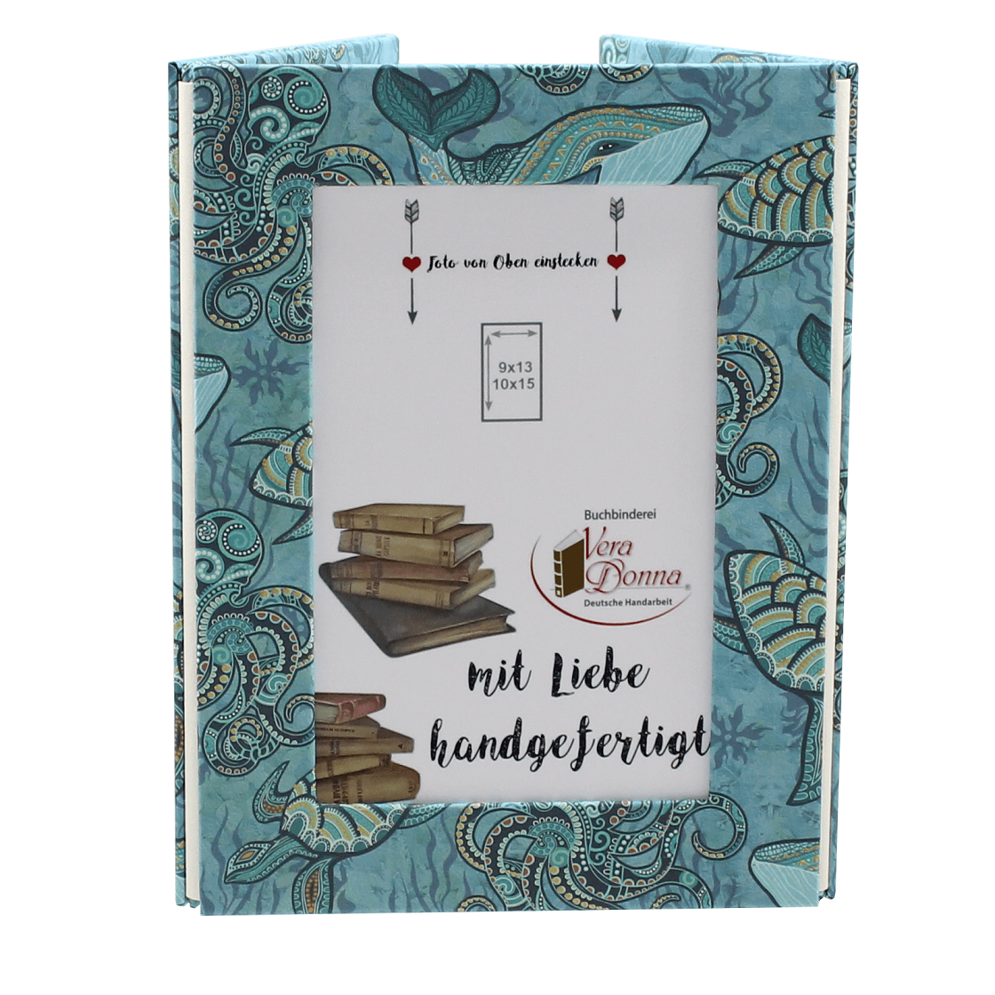 Das Fotorellos Meeresbewohner hochkant der Vera Donna Manufaktur, wird in reiner deutscher buchbinderischer Handarbeit hergestellt und ist durch seine hochwertigen chemiefreien Materialien auch bestens fürs Kinderzimmer geeignet. Platzieren Sie zum Beispiel die schönsten Urlaubsbilder in diesem Fotorellos gut sichtbar auf der Fensterbank. Mit einem Fotorellos haben Sie Ihre Bilder handlich griffbereit. Ein ideales Medium, um eine kleine Bildergeschichte zu erzählen.