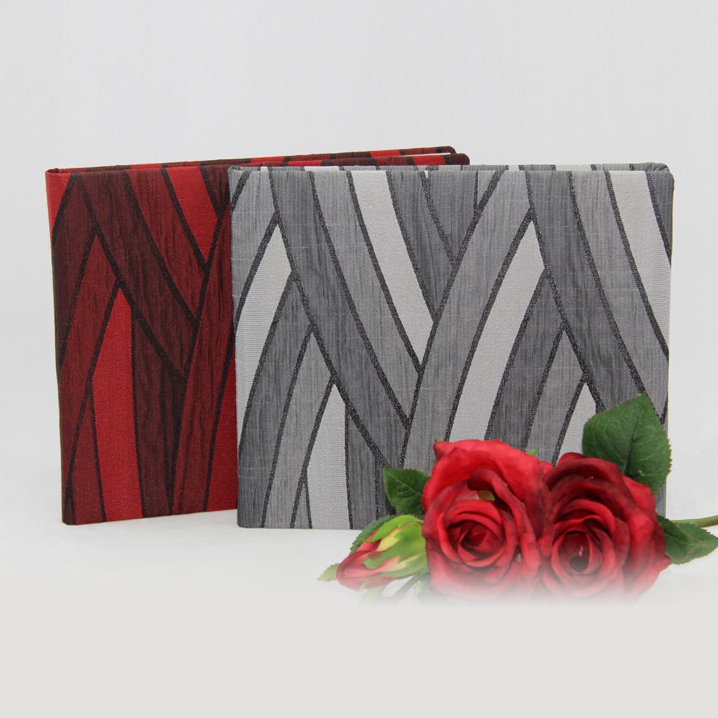 Das besondere Gästebuch „Bambus“ mit seinem geschwungenen Streifenmuster ist in den Farben Rot-schwarz und Grau-schwarz erhältlich. Der elegante Stoffeinband aus Baumwolle und Seide erinnert mit seiner Webung in leuchtenden Farben an die für Bambuswälder typischen Schattenspiele. Das aufwändig gearbeitete Webmuster ist in vier Farbnuancen von hell zu dunkel gestaltet.