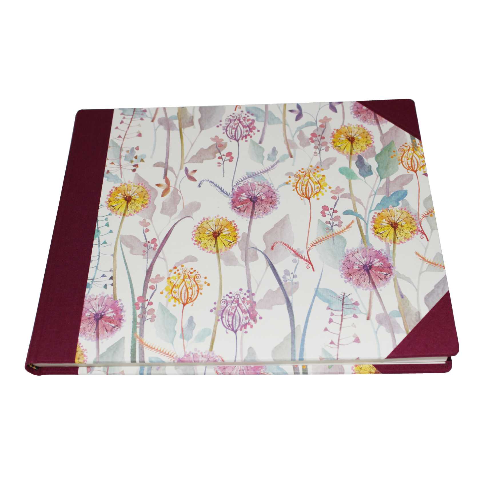 Produktkombinationen zum Gästebuch Blumenzauber mit weinrotem Buchbinderleinen im Querformat