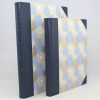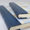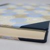 Das Gästebuch Indianrings mit blauem Leder wird aus einer Kombination von fassgegerbtem italienischen Vollrindleder in blau und edlem Designpapier aus Indien gefertigt. Es wird von uns in rein deutscher buchbinderischer Handarbeit hergestellt. Der Hartcover Papierbezug mit Baumwollanteilen ist mit einem Off-Set Druck in Kreismustern bedruckt und mit elegantem Gold- und Silberpulver versehen. Der Buchrücken und die Buchecken sind mit Leder eingefasst.