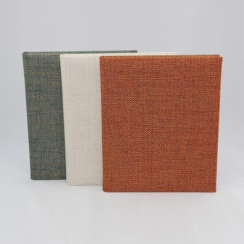 Das elegante Gästebuch „Las Vegas“ aus leuchtendem Leinenstoff ist in drei natürlichen Farbtönen erhältlich. Der weiche Leinenstoff ist mit glänzenden Fäden durchwirkt und überzeugt durch seine edel-rustikale Schlichtheit mit der Farbauswahl Creme-weiß, Gold-rot und Gold-blau.