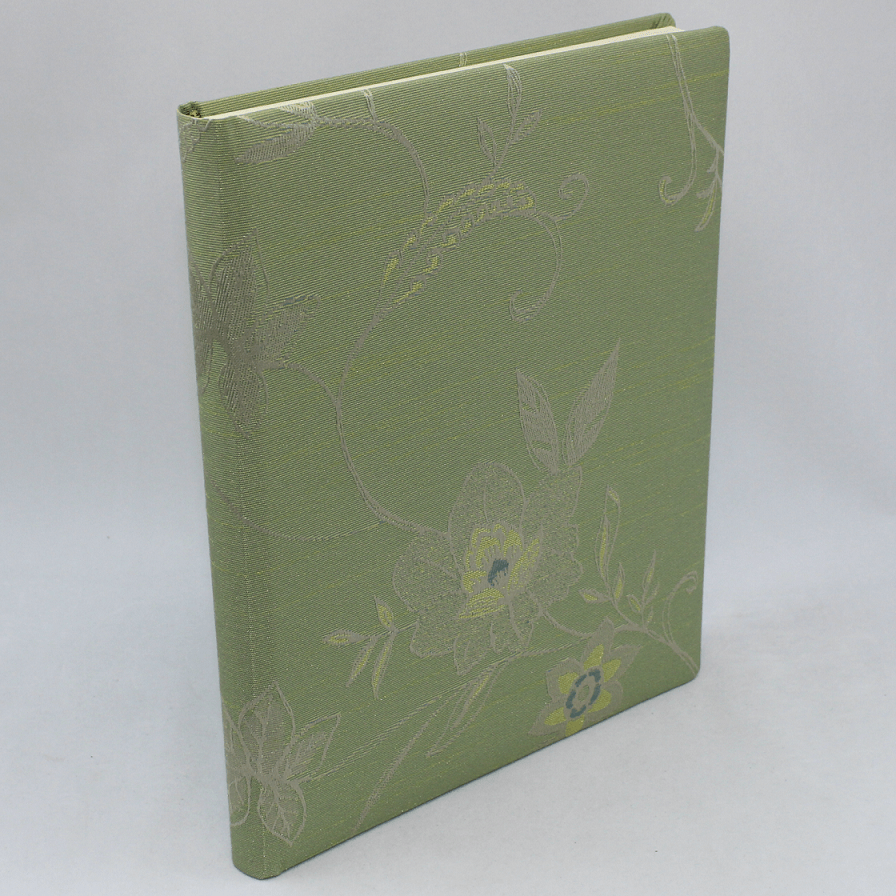 Das Gästebuch Mandy grün, besticht durch seinen feinen Baumwollstoff und dem edlem Blumenmuster.