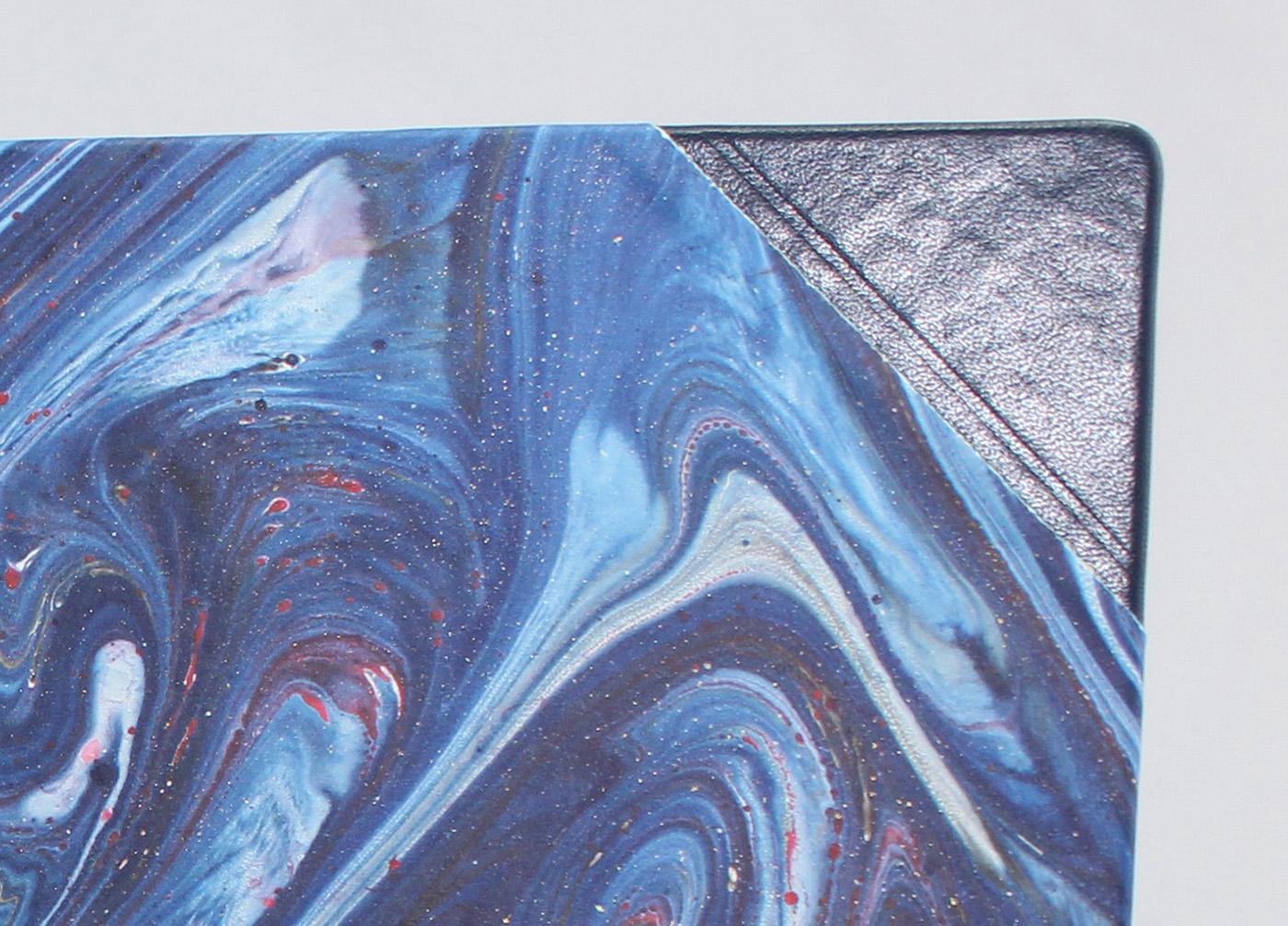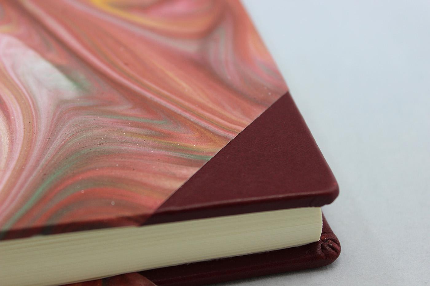 Das Gästebuch Marmor Halbleder entsteht durch eine Kombination aus farblich abgestimmten Vollrindleder, sowie einem dazu passenden Hartcover mit italienischem Marmorpapier.