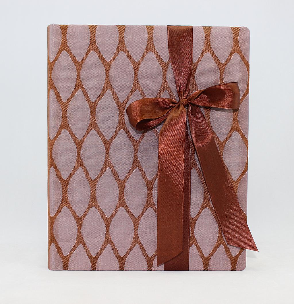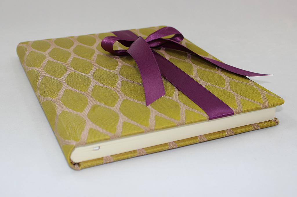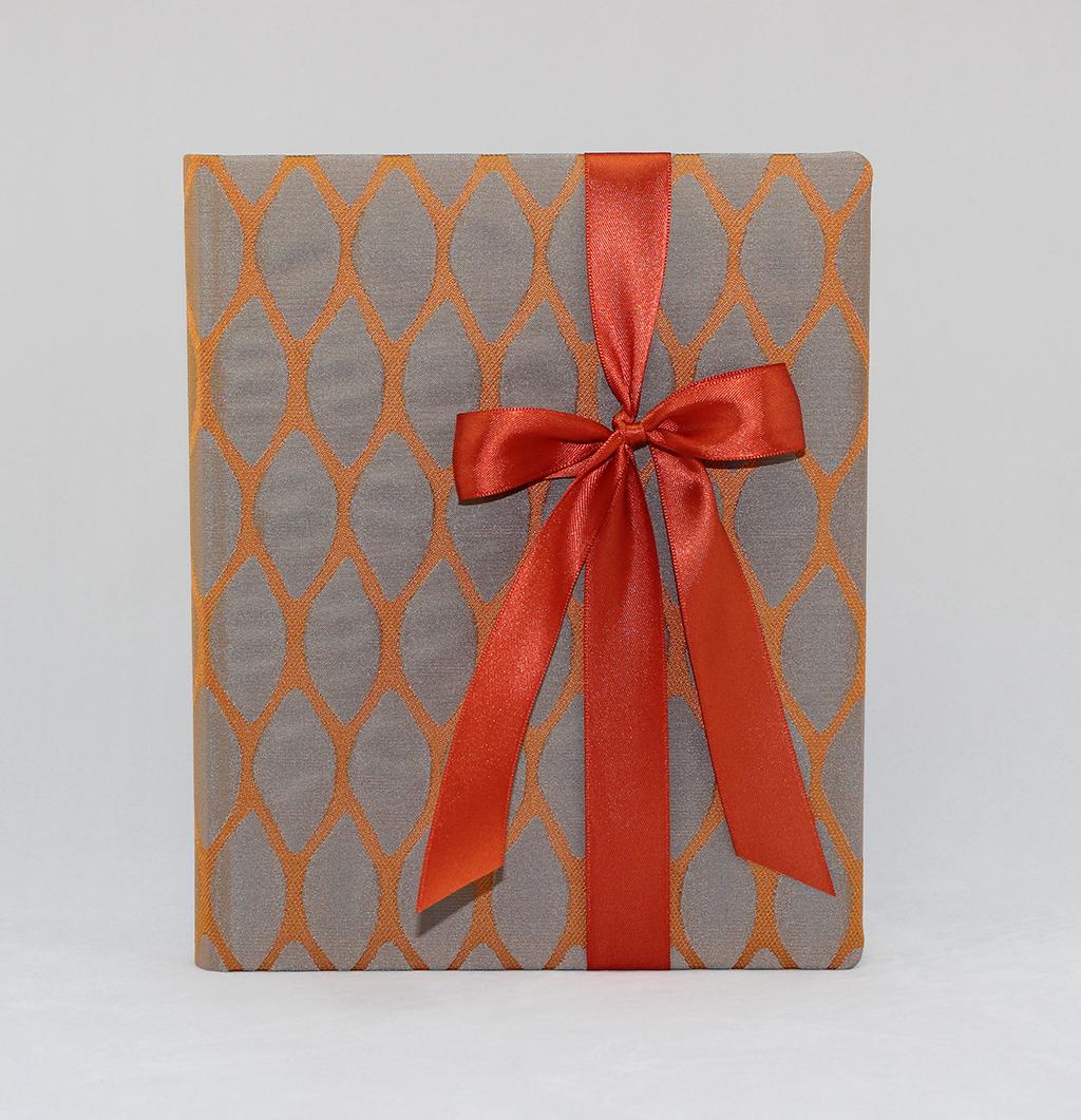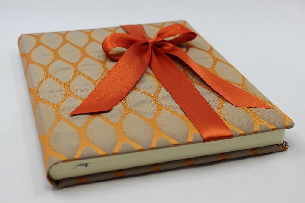 Das Gästebuch „Moire“, wird aus feinstem doppelt gewebtem Seidenstoff in Rauten Optik kreiert Eine elegante Satinschleife schmückt den Einband. Das Gästebuch ist in den Farbkombinationen Creme-weiß, Braun-lila, Orange-silber, Grün-kiwi und Lila-grün erhältlich. Die elegante Kombination der Farben macht dieses Gästebuch zum beliebten Begleiter für die Hochzeit, Taufe oder Kommunion.