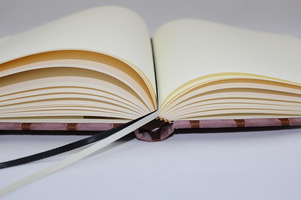 Das besondere Detail ist jedoch der in Fadenheftung gefertigte Block, der für eine lange Haltbarkeit sorgt. Dieses Merkmal buchbinderischer Handwerkskunst, indem die Blätter mittels Faden verbunden werden, unterscheidet sich ganz klar von den billigen Produkten mit Klebebindung.