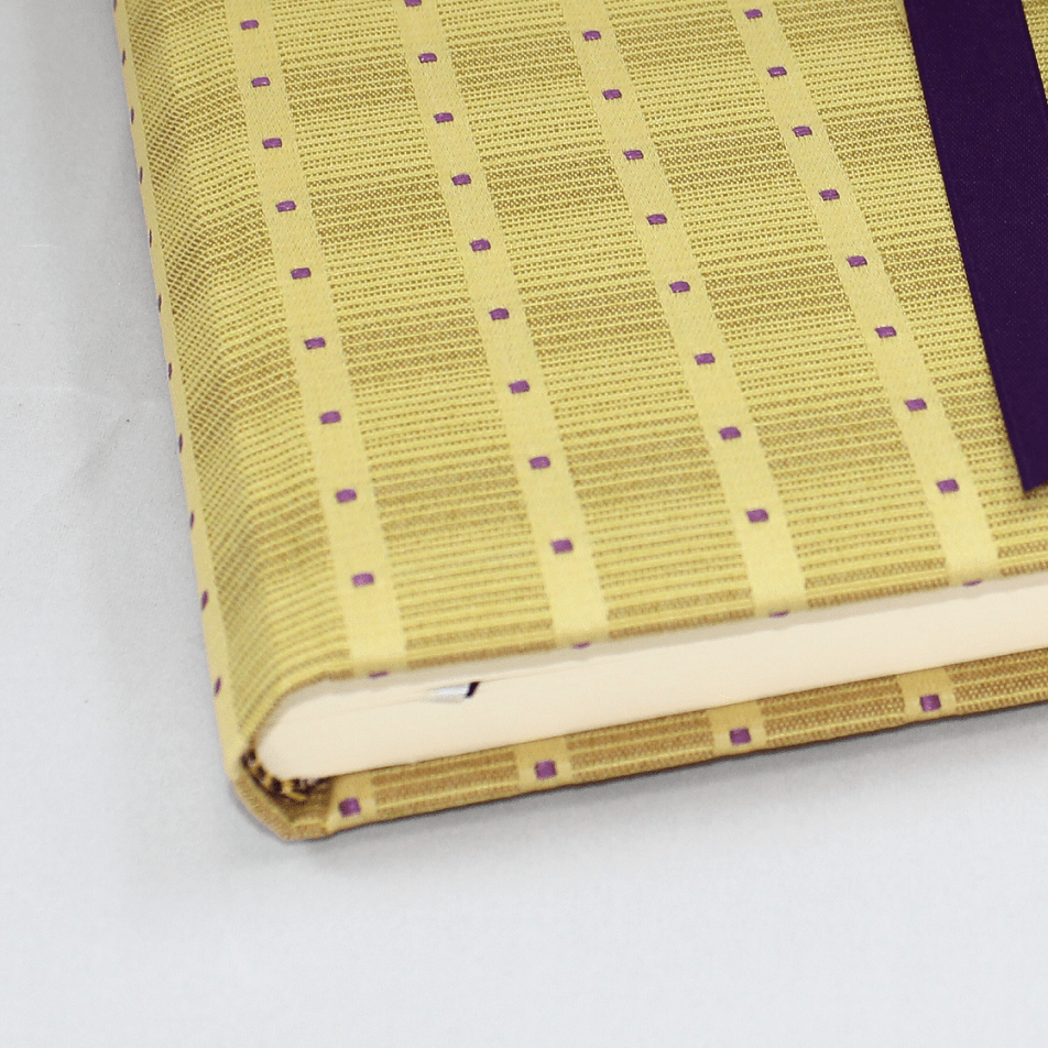 Das Erscheinungsbild des Gästebuch Sophie wird durch den aufwendig gewebten Stoffeinband geprägt. Das karoartige Streifenmuster mit gestickten Verzierungen verleiht dem Einband eine besondere Tiefe. Dieses zeitlos elegante Gästebuch ist für jeden Anlass passend und wird gerne als Hochzeitsgästebuch verwendet.