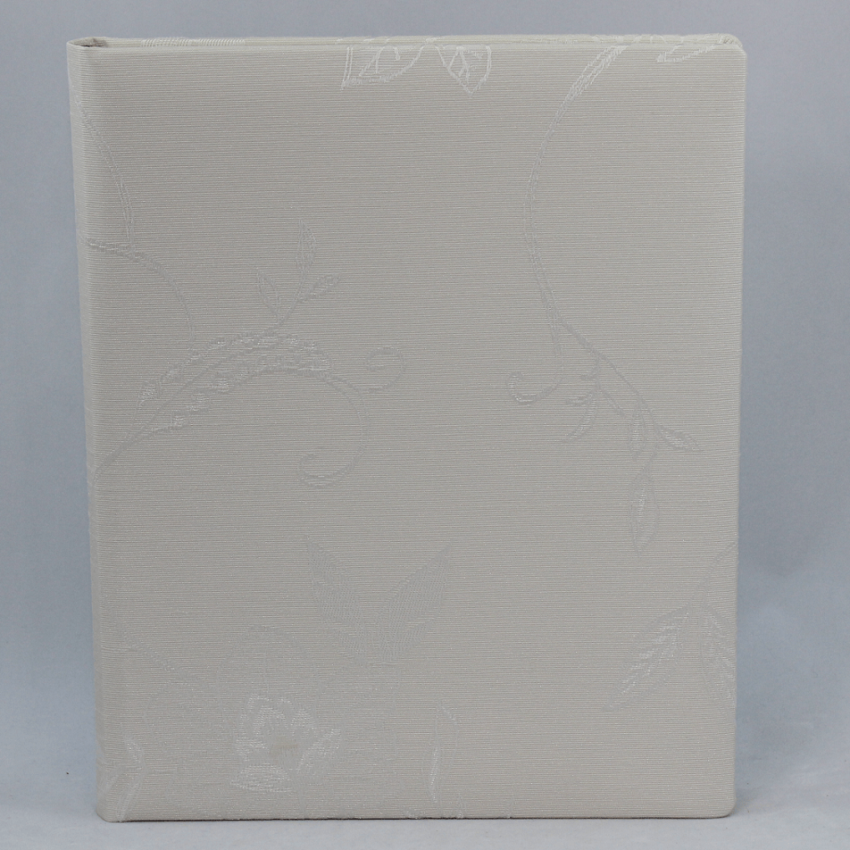 Das Hochzeits-Gästebuch Mandy creme, besticht durch seinen feinen Baumwollstoff mit edlem Blumenmuster.