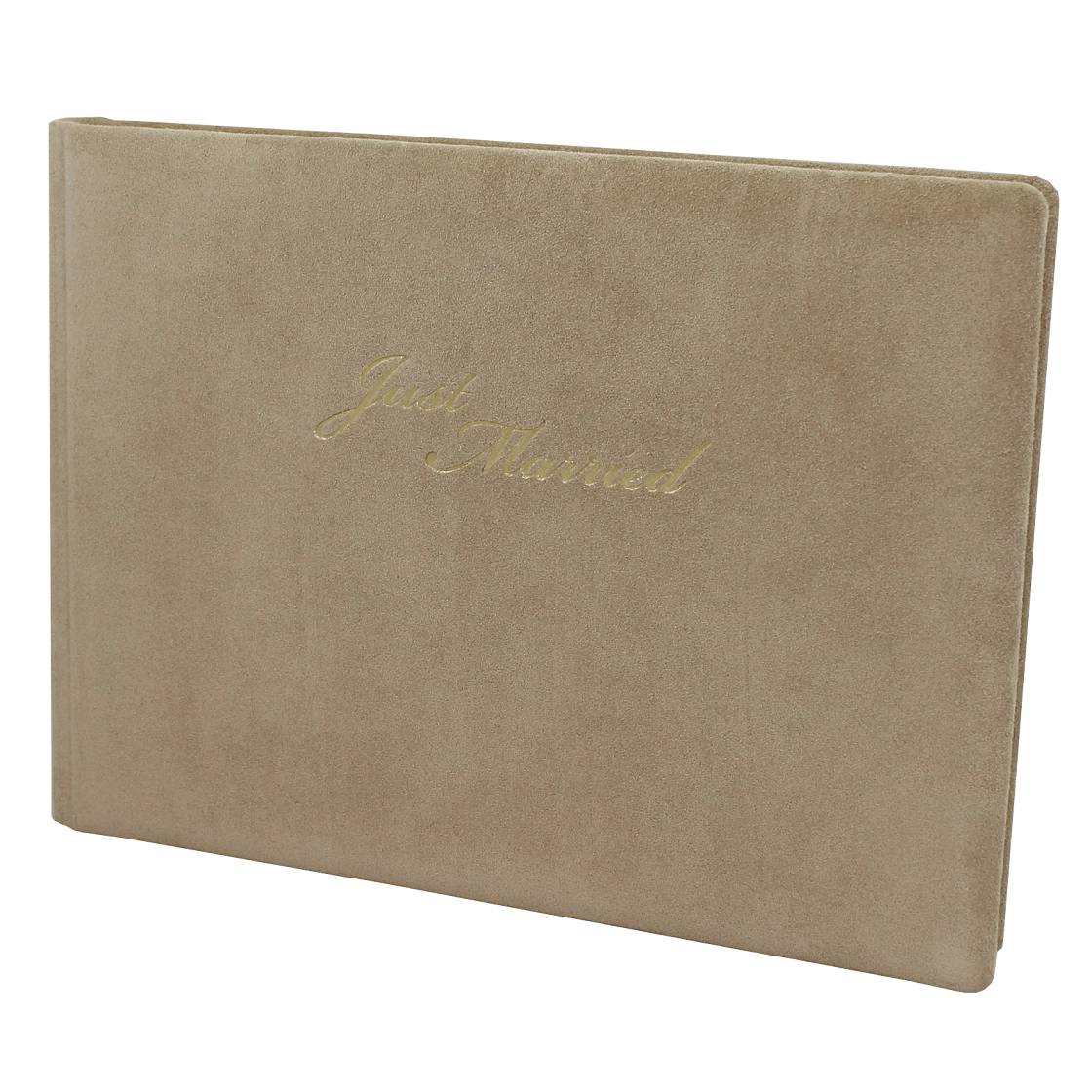 Hochzeitsgästebuch „Just Married“ Wildleder in Latte Macchiato: Zeitlose Eleganz für bleibende Erinnerungen