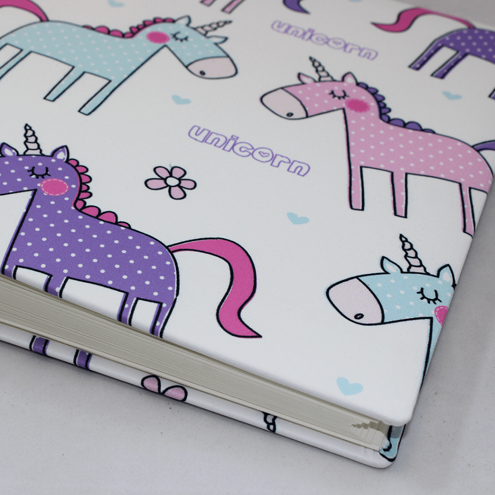 Gebunden in traditioneller Fadenheftung in reiner deutscher Handarbeit aus dem Hause Vera Donna. Das Trendmotiv Einhorn begeistert Jung und Alt.