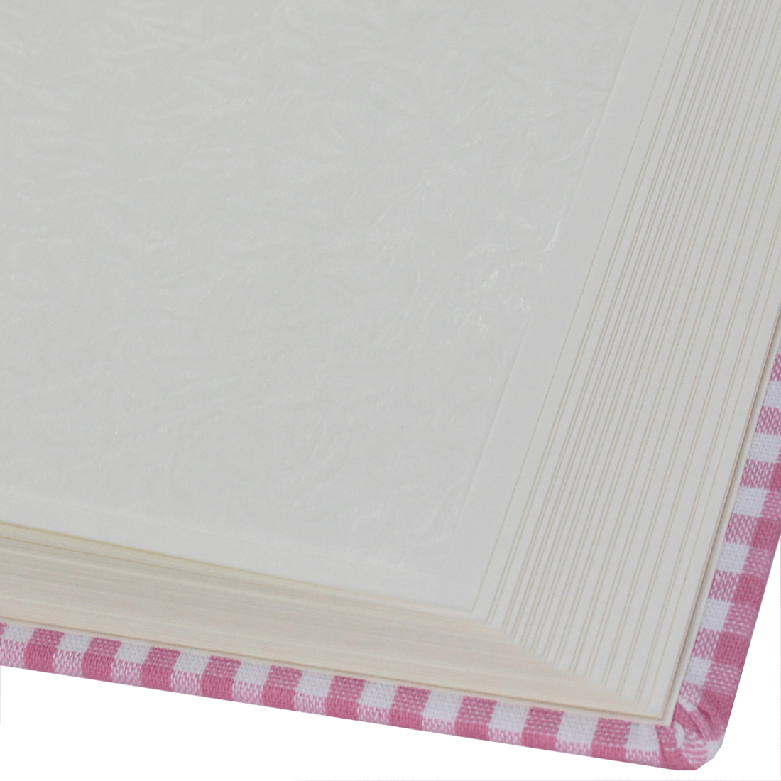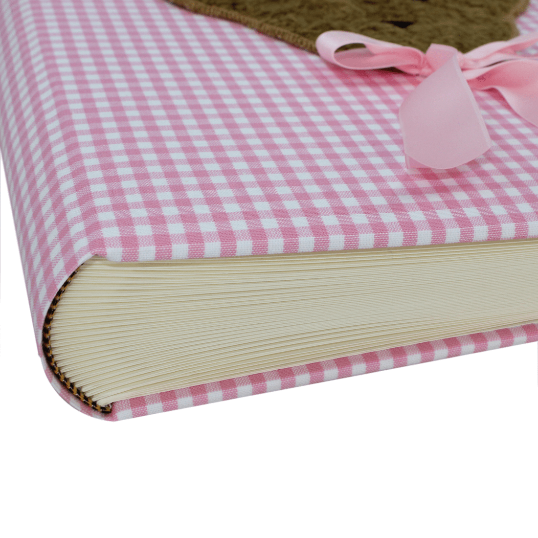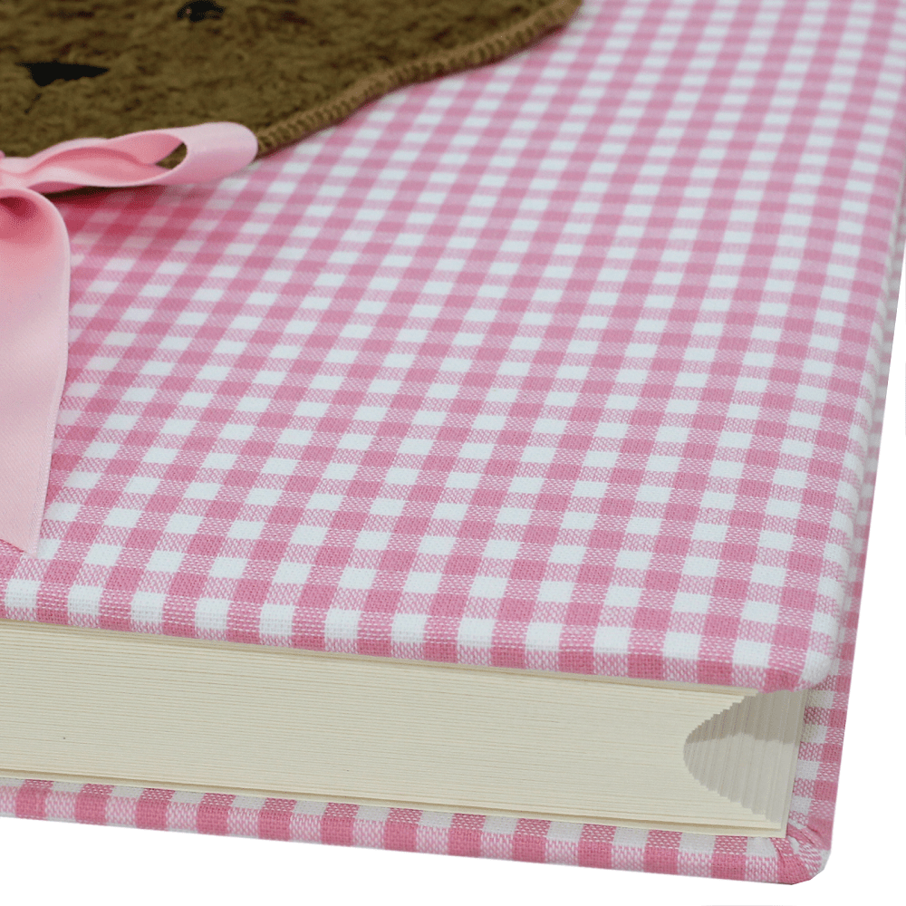 Dieses wunderschöne Kinderalbum Teddy Karo Groß in Rosa eignet sich aufgrund der rosanen Farbgebung ideal für Mädchen und erlaubt es Ihnen, die erste Zeit mit Ihrem Baby in Bild und Wort festzuhalten. Ganz nach Ihren Vorstellungen lässt sich das Softcover-Fotoalbum individuell gestalten. Der in klassischem Karomuster gewebte Stoff ist durch die einzigartigen Applikationen perfekt für Ihr Kind geeignet. Eine Besonderheit ist das fröhliche Design mit dem flauschigen Teddybärenkopf mit passender Schleife, den die Kinder besonders lieben.