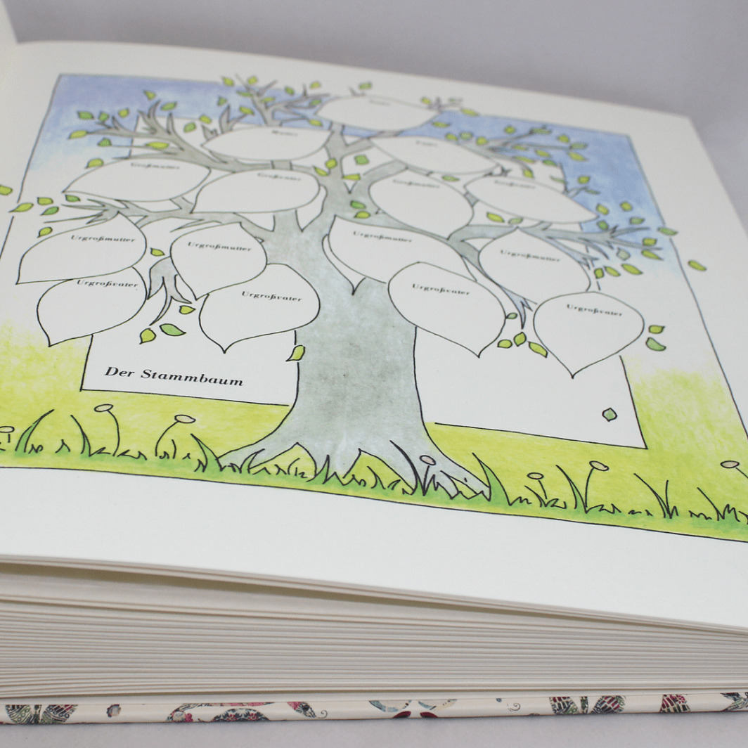 Dieses besondere Kinderfotoalbum bietet die Option eines Kindervorspanns. Hier finden Sie mehrere Seiten mit speziellen Eintragungsmöglichkeiten, wie einem Familienstammbaum, Platz für das erste Foto, Taufdaten und vieles mehr. Damit können Sie die Entwicklung Ihres Kindes von Anfang an festhalten.