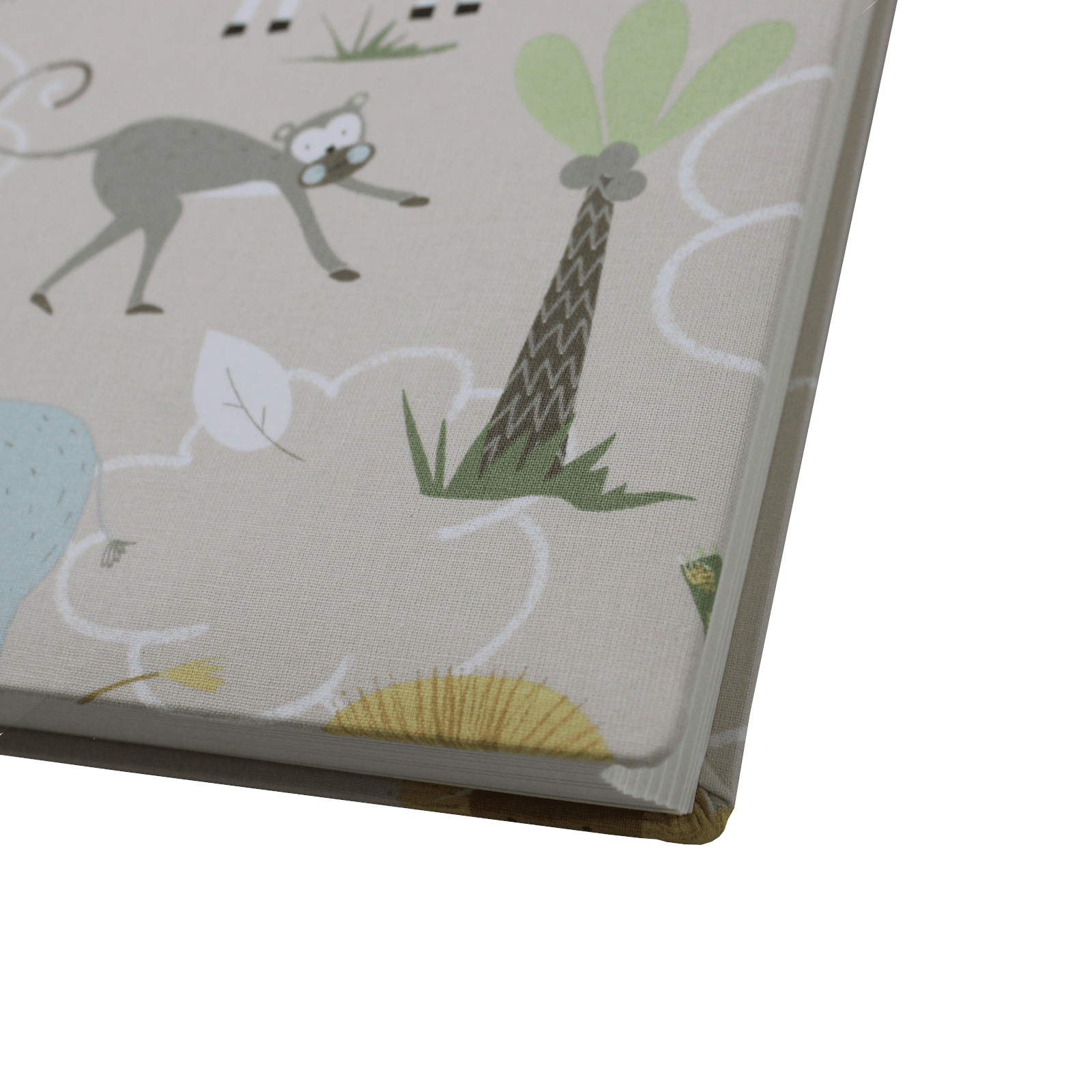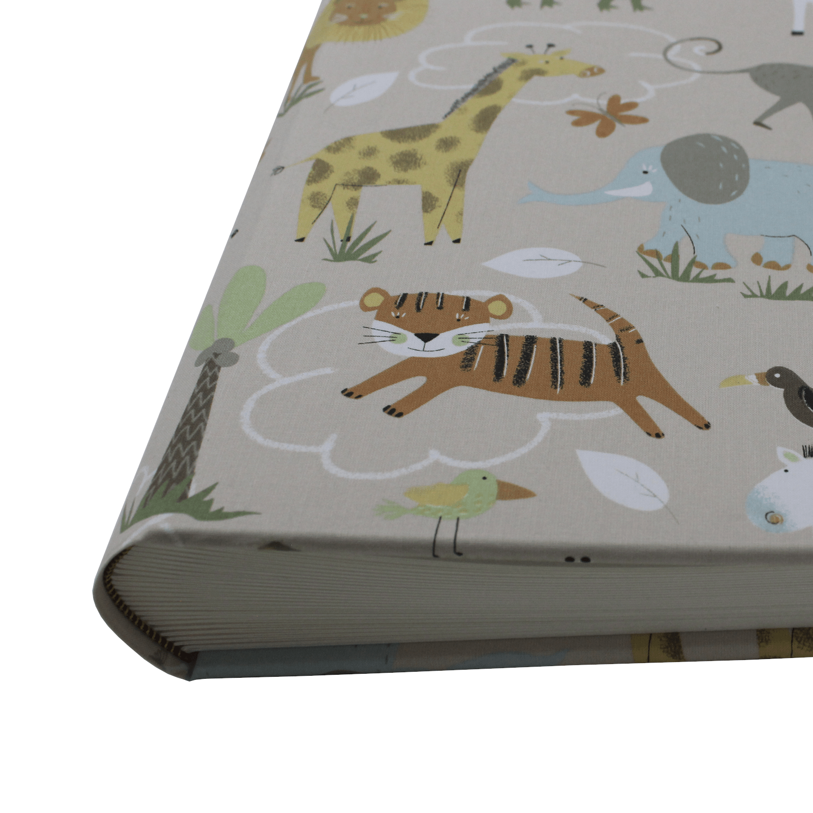Der Baumwoll-Stoffeinband des Kinder-Fotoalbums Wild Afrika überzeugt durch seine Pastelltöne und seine Tier-Motive. Der im Natur gehaltene Baumwoll-Stoffeinband stammt aus deutscher Herstellung und ist zu 100 Prozent chemiefreie verarbeitet.