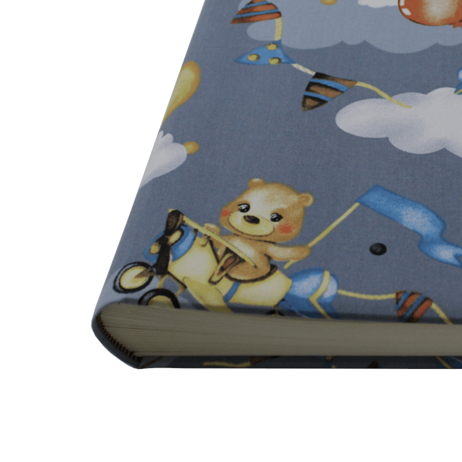 Das Kinder-Fotoalbum Wolken im Großformat mit Baumwoll-Stoffeinband wird in Handarbeit nach deutscher Buchbinderkunst gefertigt. Das hochwertig verarbeitete Fotoalbum ist durch seine Verarbeitung für den Einsatz im Kinderzimmer bestens geeignet.