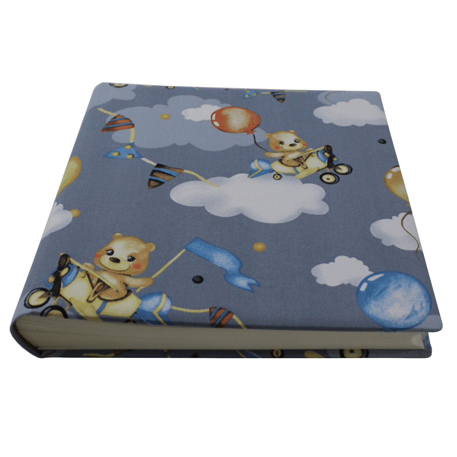 Der Baumwoll-Stoffeinband des Kinder-Fotoalbums Wolken überzeugt durch seinem zartem blau und seine Motive, mit Bären und Wolken. Der im hell-Blauem gehaltenem Baumwoll-Stoffeinband stammt aus deutscher Herstellung und ist zu 100 Prozent chemiefreie verarbeitet.