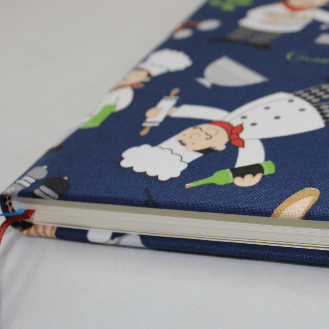 Jetzt finden Kochrezepte und Backrezepte – die Lieblingsrezepte – endlich Platz und die Herumsucherei in Schubläden oder Rezeptordnern hat ein Ende. So entsteht mit der Zeit ein unentbehrliches einmaliges Rezeptbuch. Das Kochrezept-Sammelbuch Chefkoch in Blau entsteht aus einem blauen, abwaschbarem Baumwollstoff, der mit lustigen Chefkoch Motiven bedruckt ist.