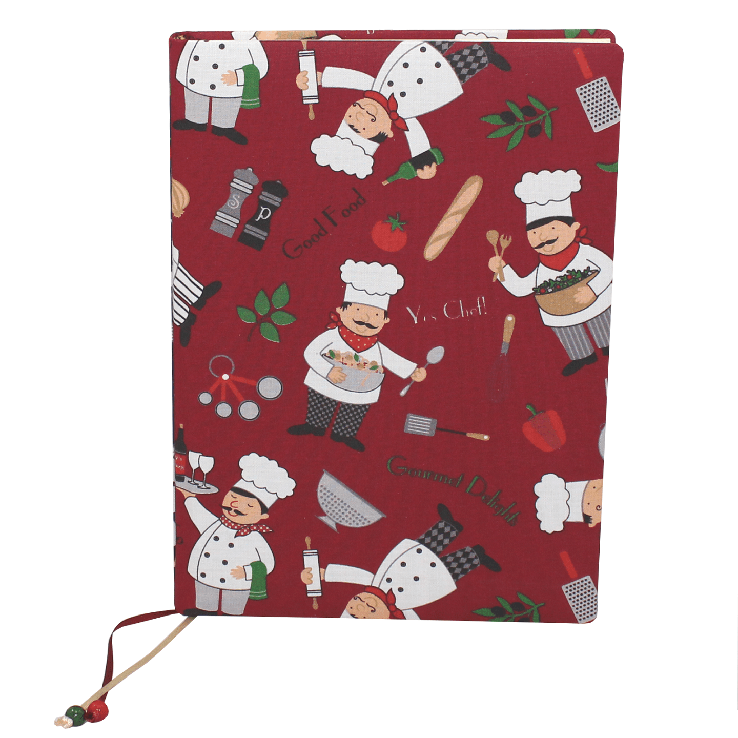 Schluss mit der Zettelwirtschaft: Dieses liebevoll gestaltete Rezeptbuch bietet mit 160 Seiten Platz für Ihre Lieblingsrezepte. Das praktische Register erleichtert das Sortieren und Auffinden der Rezepte. Das Kochrezept Sammelbuch Chefkoch in Rot entsteht aus einem rotem, abwaschbarem Baumwollstoff, der mit lustigen Chefkoch Motiven bedruckt ist.