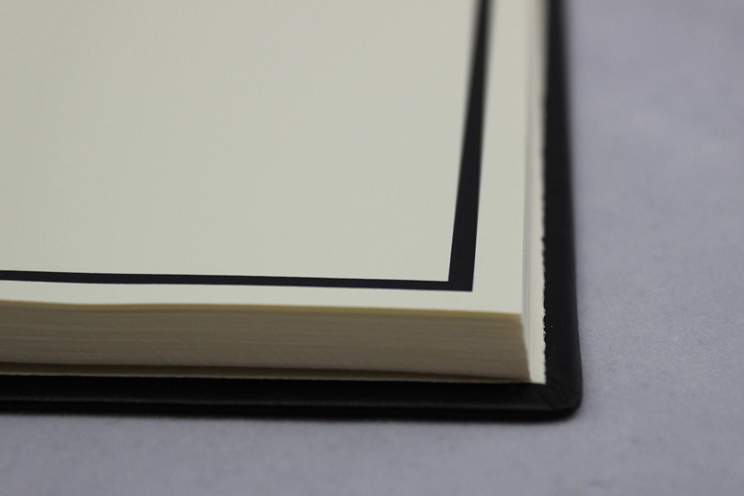 Eine besondere Qualität ist das hochwertige chamoisfarbene Einschreibpapier in 100 g/m². Dieses ist mit einem schwarzen, dreiseitigem Trauerrand bedruckt. Das Papier ist absolut säurefrei und damit auch bestens für das Schreiben mit einem Füllfederhalter geeignet.
