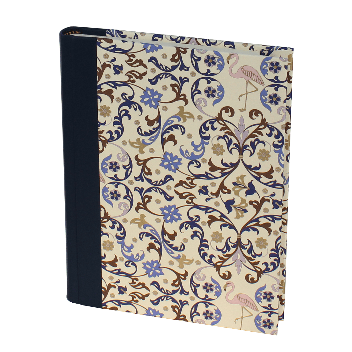Das Notizbuch Flamingo mit integriertem Stifthalter entsteht durch eine Kombination aus blauem Vollrindleder und einem wunderschön bedruckten Designpapier mit Flamingo Motiv. Der Hartcover Einband, ist aus hochwertigen italienischen Papier bezogen und überzeugt durch das im Jugendstil gehaltene Druckmotiv Flamingo. Die in Blautönen gehaltenen Blumenranken sowie Flamingos in zartem Rosa, runden das Gesamtbild ab. Druckdetails sind mit edlen Goldpulverakzenten hervorgehoben und schimmern bei jeder Bewegung. Als Besonderheit ist im integrierten Stifthalter ein Bleistift im gleichem Design enthalten.