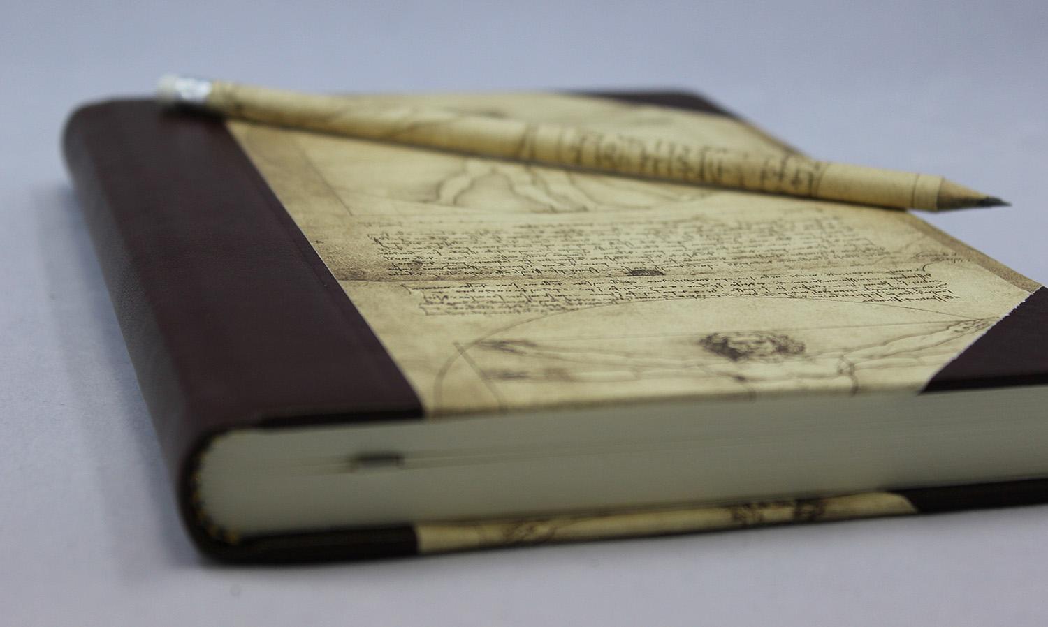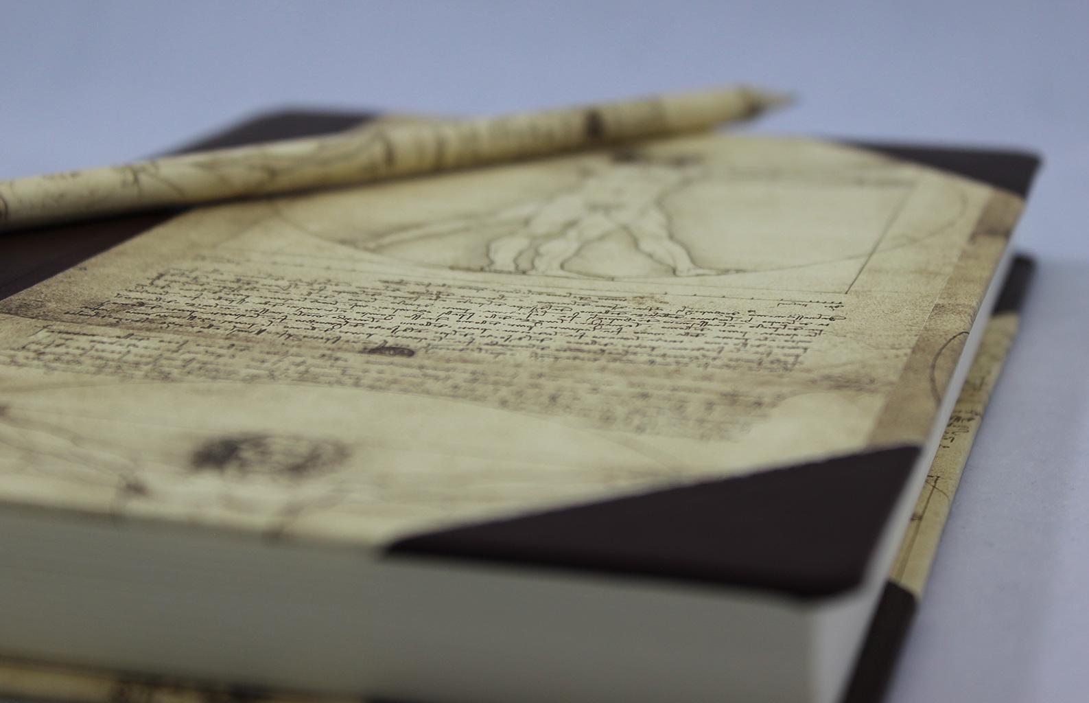 Qualitätsmerkmale Notizbuch Leonardo Da Vinci mit passendem Stift