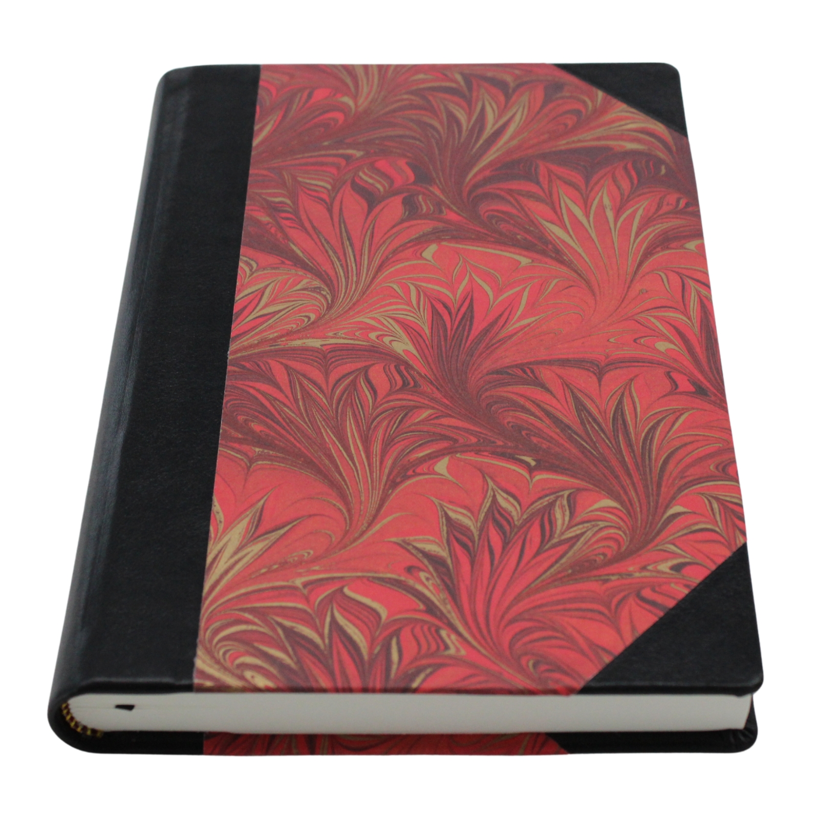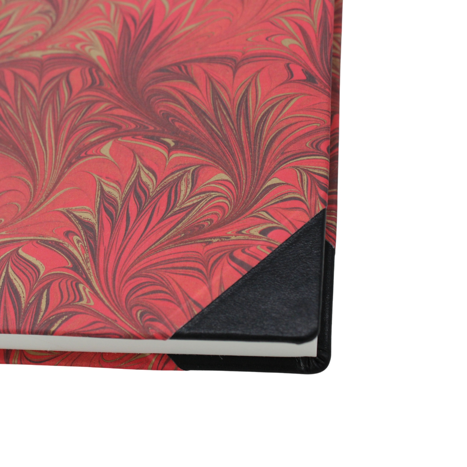 Bestes fass gegerbtes schwarzes Vollrindleder am Buchrücken und Ecken sowie der farblich Druck mit Marmorpapier, sind etwas ganz besonderes. Sie werden die Qualität spüren und den tollen Ledergeruch lieben. Als highlight ist dem Notizbuch ein Bleistift im selben Muster beigefügt.