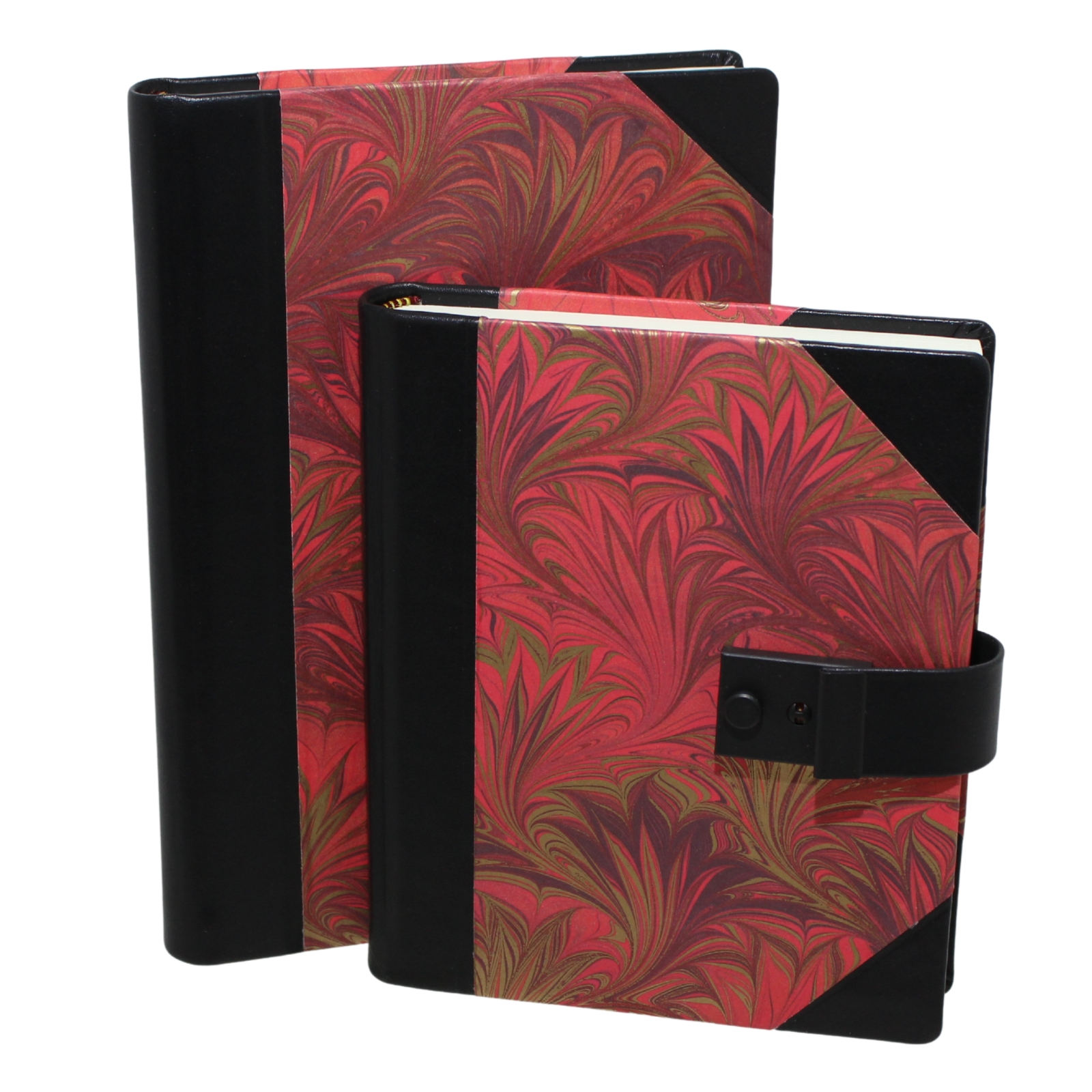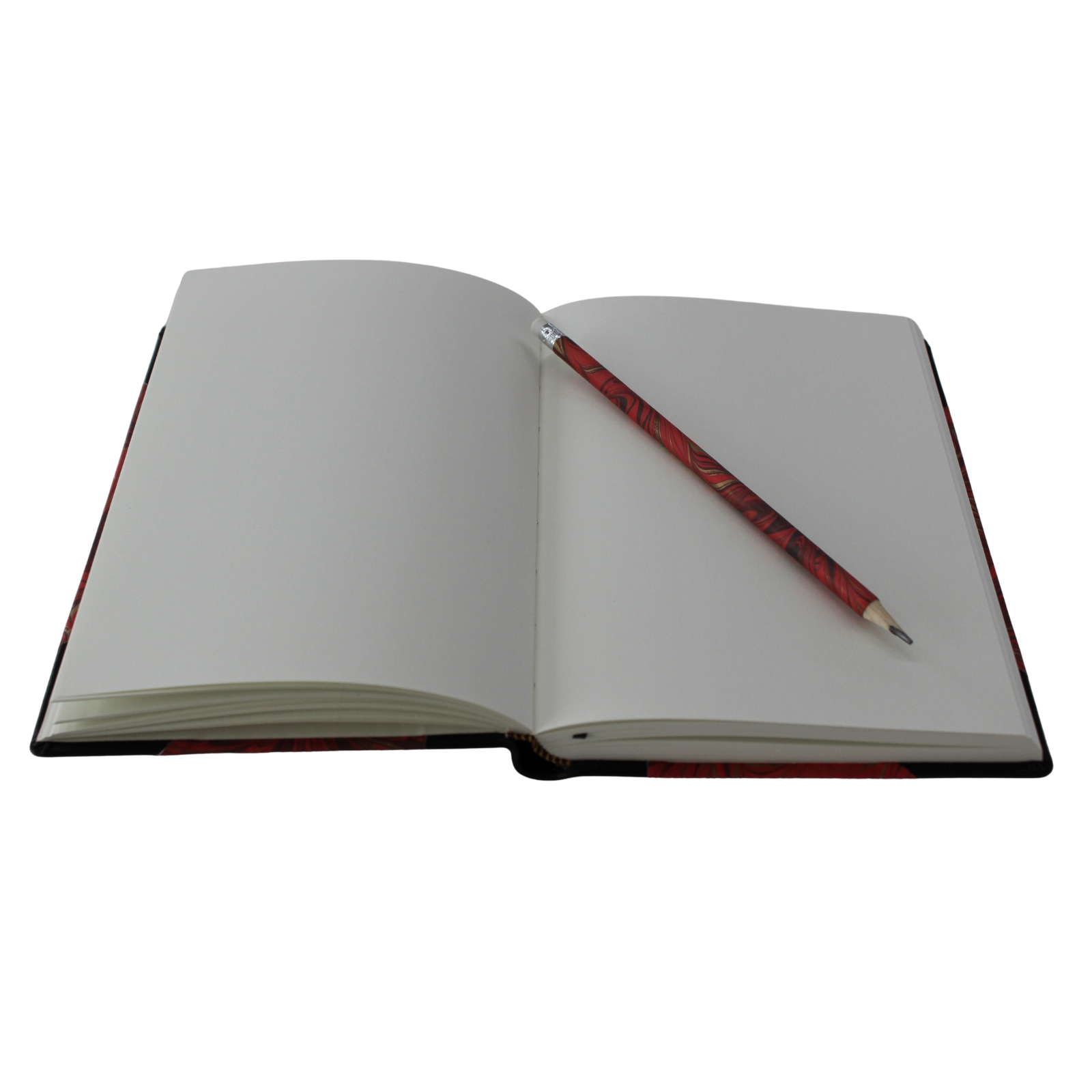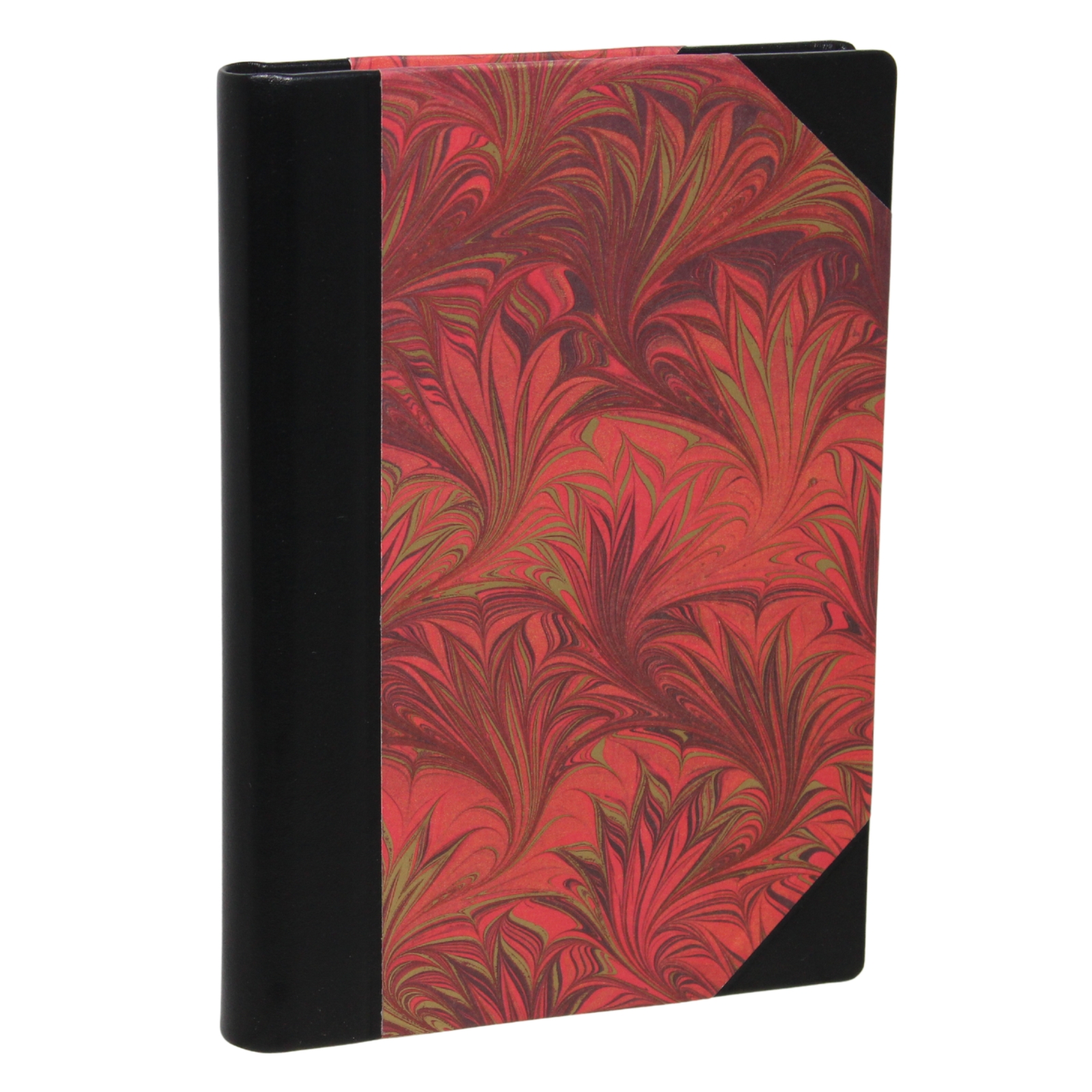 Das Notizbuch Marmorata mit passendem Stift entsteht durch eine Kombination aus schwarzem italienischem Vollrindleder, sowie einem dazu passenden hochwertigen Hartcover aus edlem marmoriertes Papier in rot-Gold. Als Besonderheit ist ein Bleistift im gleichem Muster im Lieferumfang enthalten.