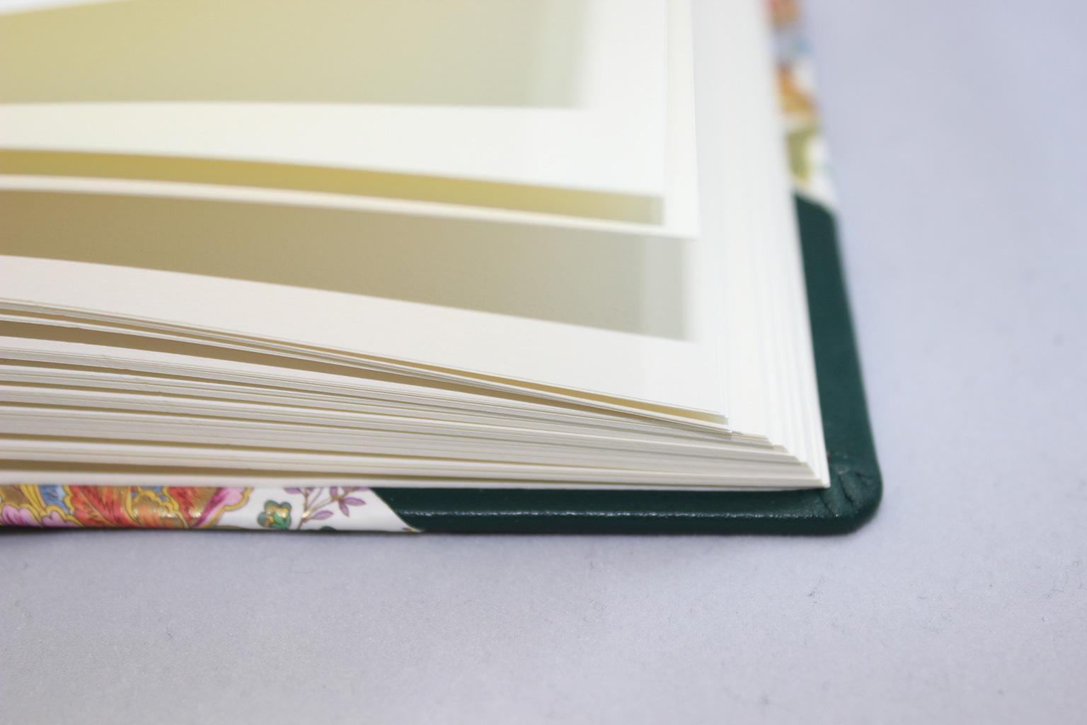 Um den typischen Buch-Charakter zu erreichen, wird der Blockrücken gerundet. Zusätzlich wird der Buchblock mit einem Kapitalband veredelt.