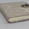 Das Poesie-Tagebuch Lisa mit seinem pastellfarbenen Baumwollstoff in Lattemacchiato und den kreisförmigen weißen Stickereien, wird in reiner deutscher Buchbinderischen Handarbeit hergestellt. Das Tagebuch ist mit einem hochwertigen Schloss inklusive Schlüssel versehen.