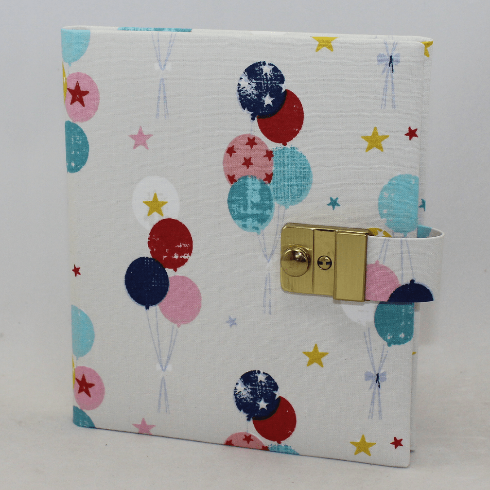 Das Poesie-Tagebuch Luftballons in beige-blau besticht durch seinen bunt bedruckten französischen Baumwolleinband. Auf beigem Untergrund sind liebevoll gestaltete Luftballons und kleine Sterne in Rot- und Blautönen abgebildet.