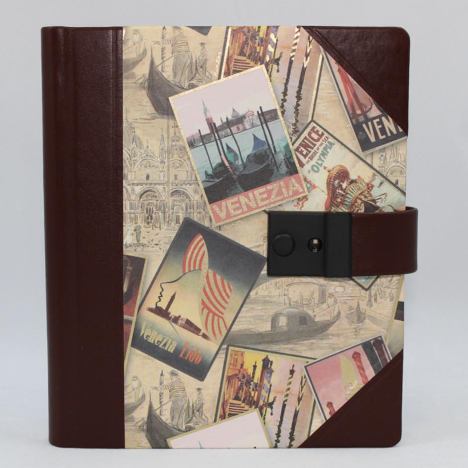 Das Tagebuch Venezia entsteht durch eine Kombination aus braunem italienischem Vollrindleder, sowie einem dazu passendem Hartcover in venezianischem Design. Der Lederrücken und die gerundeten Buchecken sind in klassischer Handarbeit hergestellt. Das Poesie-Tagebuch ist mit einem passendem Schloss incl. Schlüssel ausgestattet. Die exquisite Qualität des Buches ergibt sich aus gerundetem Block mit Kapitalband und bestem Einschreibpapier. Das besondere Detail ist der in Fadenheftung gefertigte Block, der für eine lange Haltbarkeit sorgt.