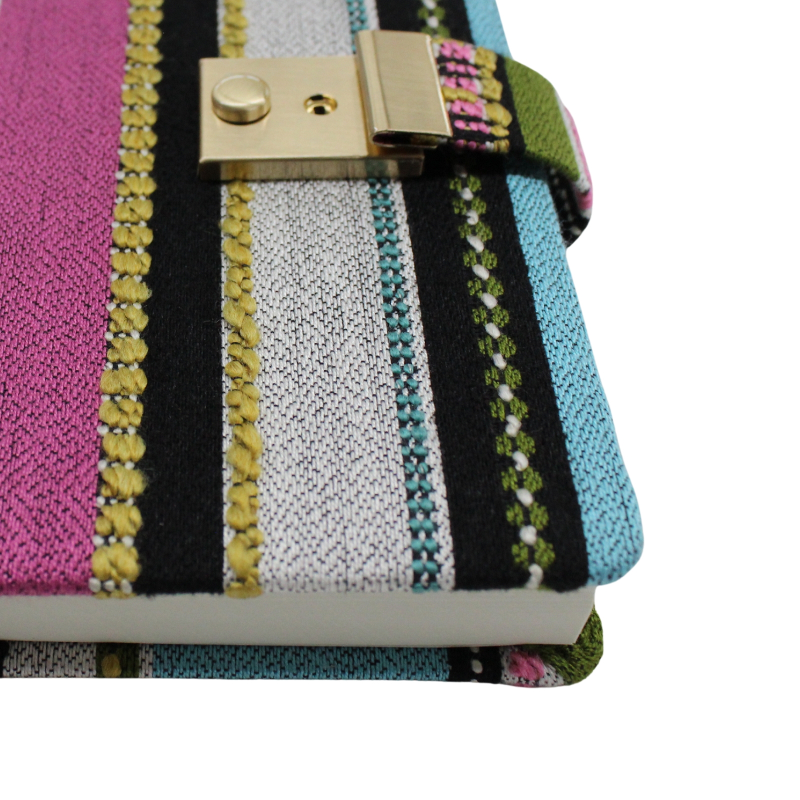 Das Poesie oder Tagebuch mit Schloss Liane in Bunt, ist handgefertigt und kann auch als Notizbuch oder beispielsweise als Reisetagebuch verwendet werden. Der Softcover-Einband überzeugt durch seinem exklusiven-Farbenfrohes Muster aus Baumwolle. Der Baumwoll-Stoffeinband stammt aus Deutscher Herstellung und ist zu 100 Prozent chemiefrei verarbeitet.
