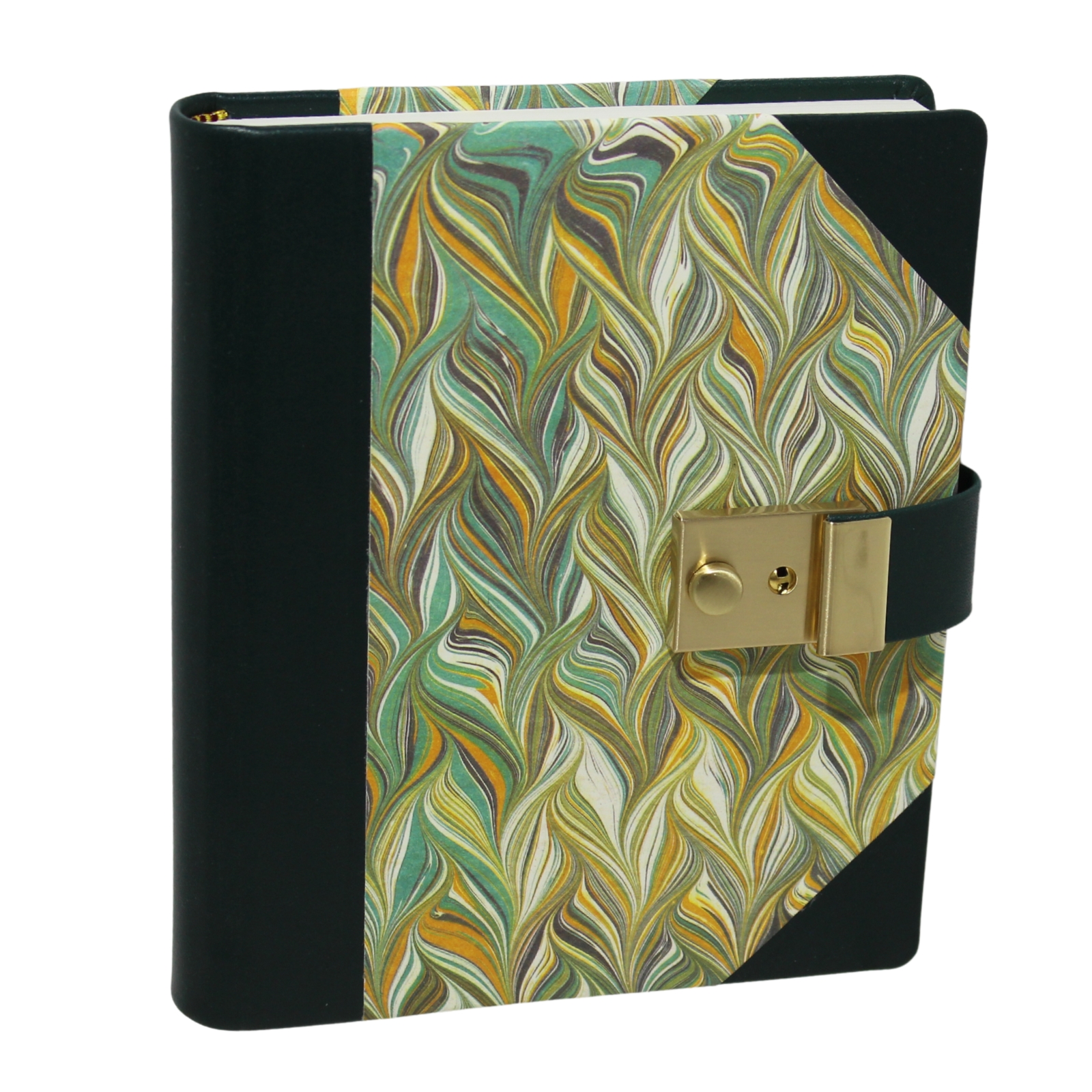 • Poesie oder Tagebuch Pettinato mit grünem Leder-Elementen