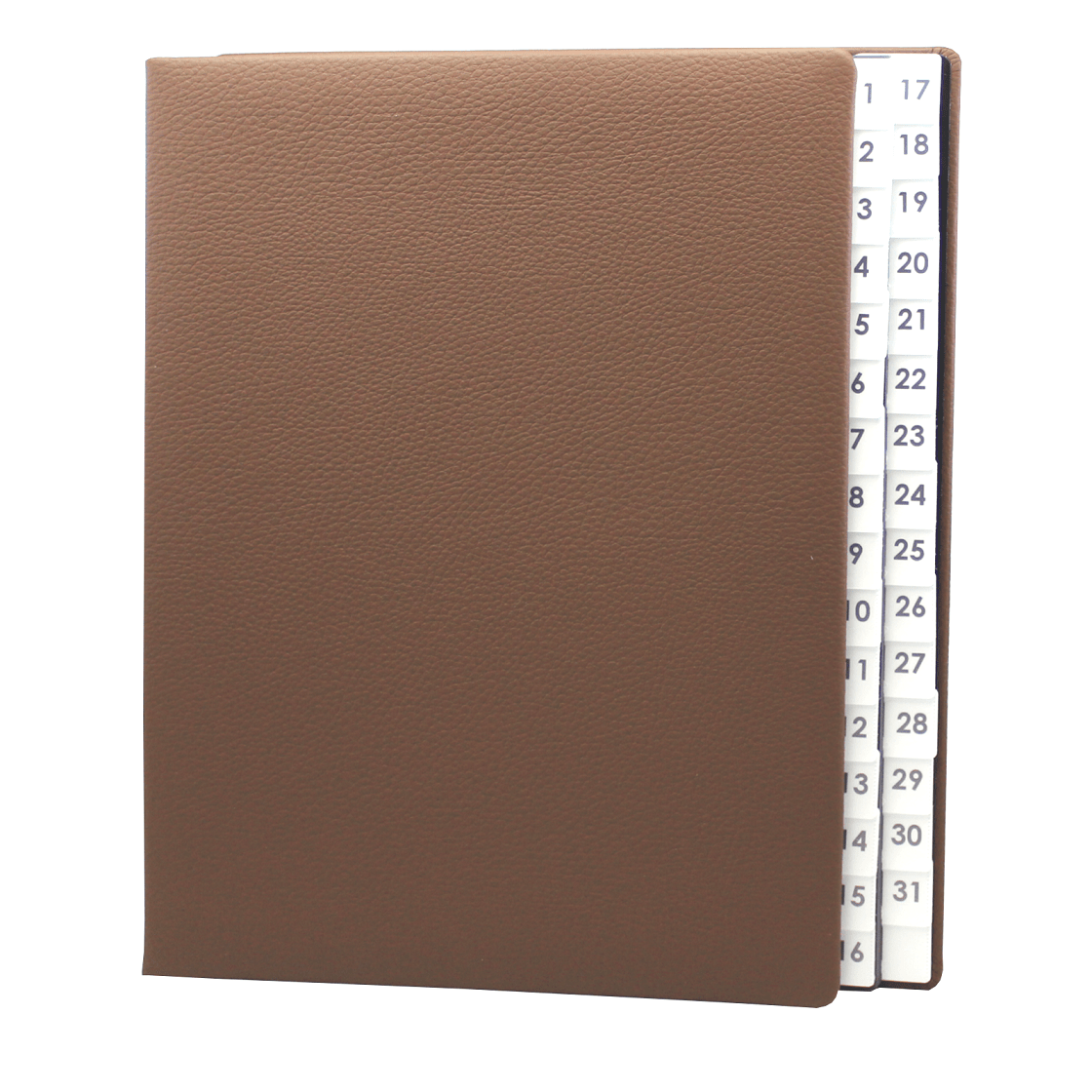 Weitere Informationen Pultordner mit Registern 1-31 aus genarbtem Vollrindleder in Braun