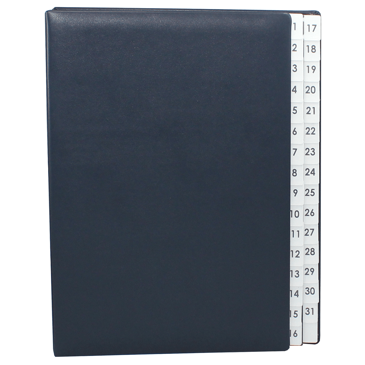 Pultordner mit Registern 1-31 aus glattem Vollrindleder in Blau