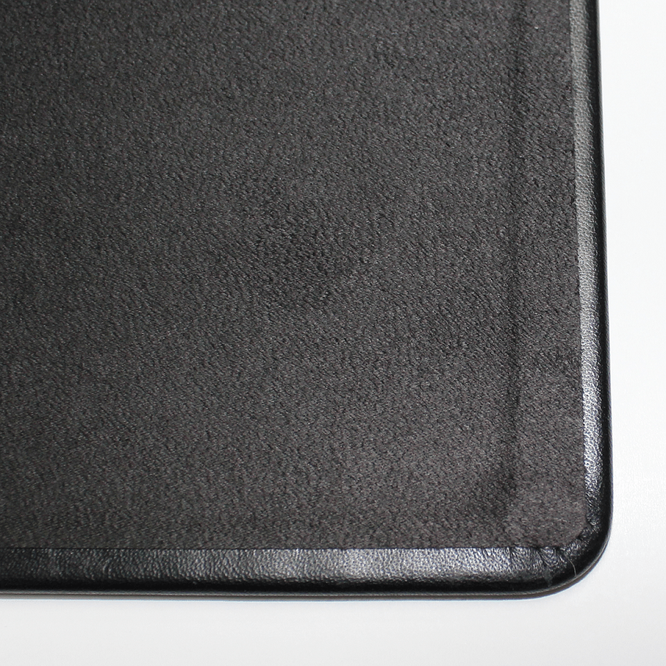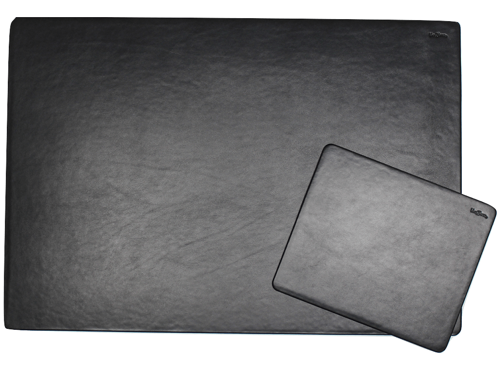 Die Schreibtischunterlagen und Mousepads aus echtem italienischem Vollrindleder in schwarz werden bewusst schlicht gehalten. Die glatte Lederoberfläche verzichtet auf störende Taschen und Nähte. Optisch zeichnen sich die Schreibunterlage sowie das Mousepad durch abgerundete Ecken aus. Ein weiteres wichtiges Merkmal ist das hochwertige Antirutschgewebe auf der Rückseite. Eine zeitlos-elegante Schreibtischunterlage fürs Büro und daheim.