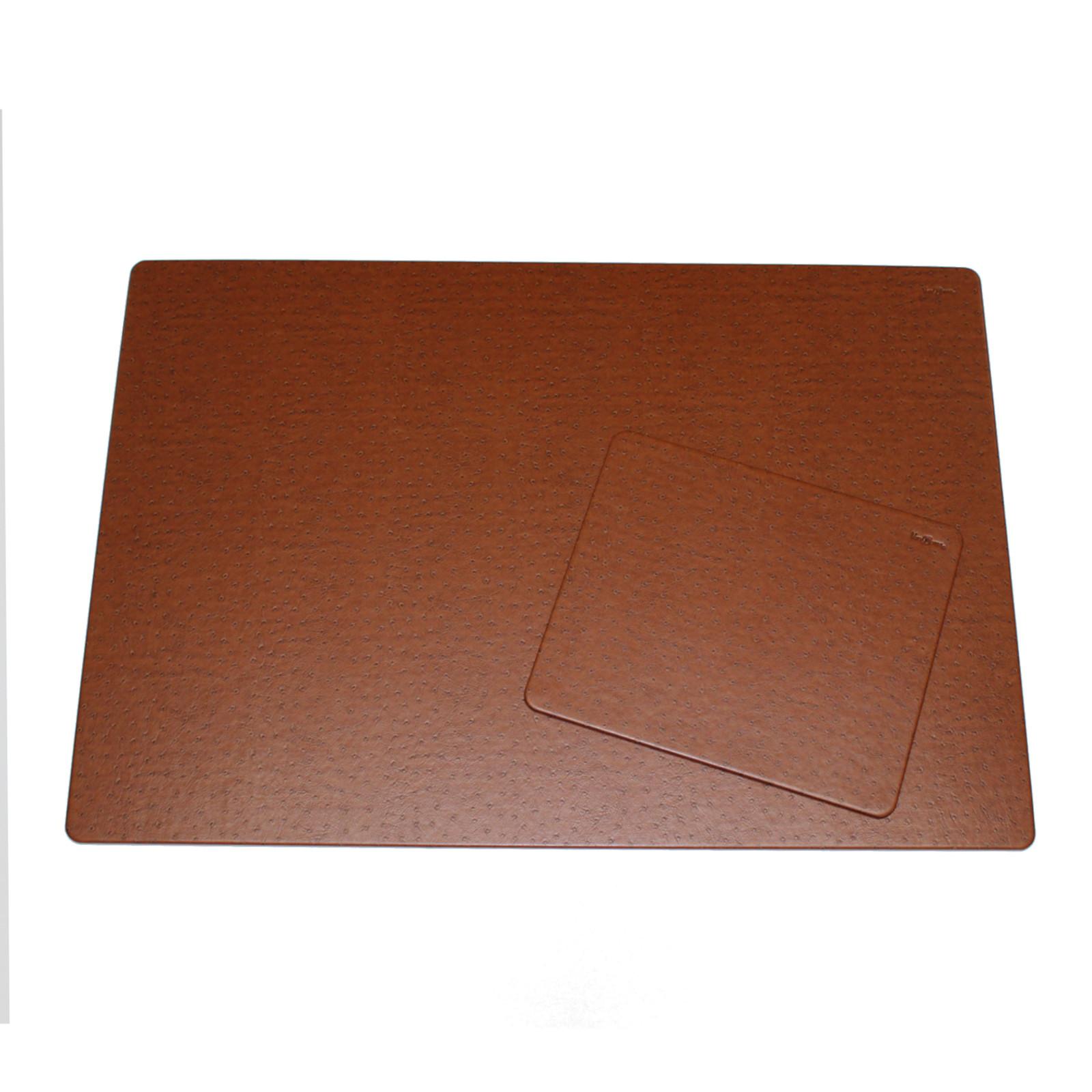 Die Schreibtischunterlage Strauß braun mit passendem Mousepad, besticht durch das einzigartige Design und dem sehr angenehm weichem Handhabungsgefühl.