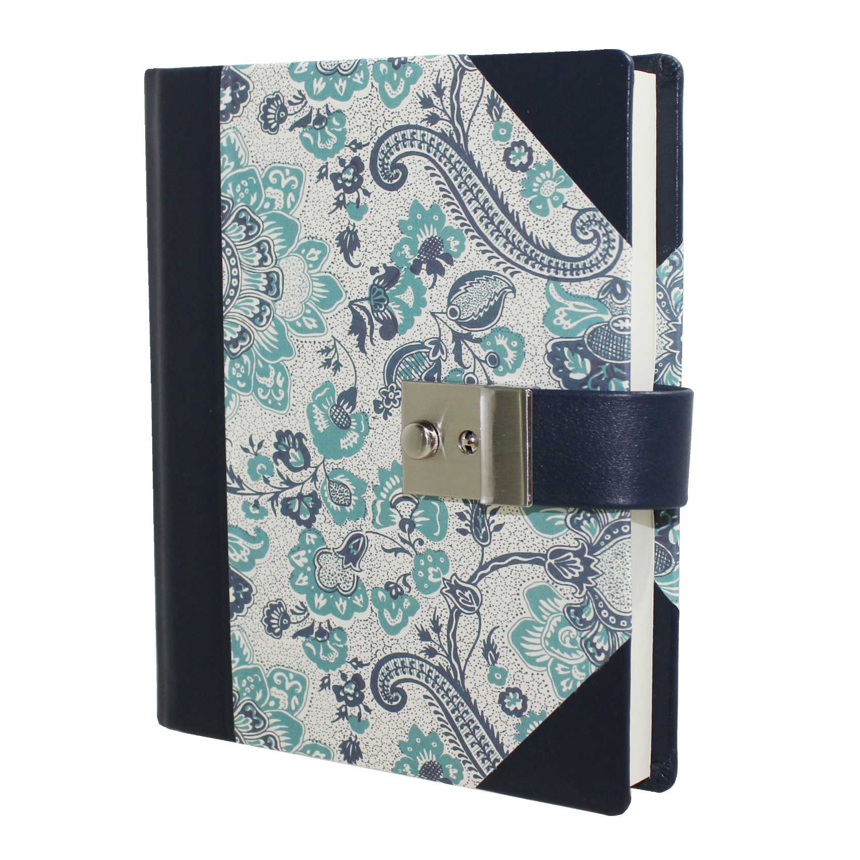 Unser Tagebuch Blue Provence mit Schloss, verziert mit einem eleganten blauen Paisley-Muster, ist das perfekte Accessoire für diejenigen, die Stil und Funktionalität in einem ansprechenden Paket suchen.